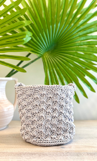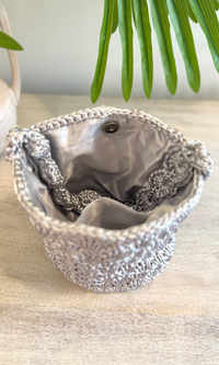 Tokyo Silver Woven Silk Crochet Bucket Bag