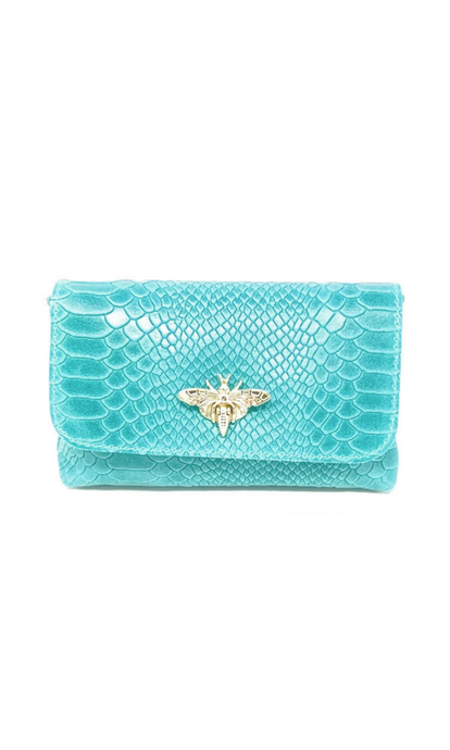Italian Textured Leather Bee Clasp Bag–Turquoise