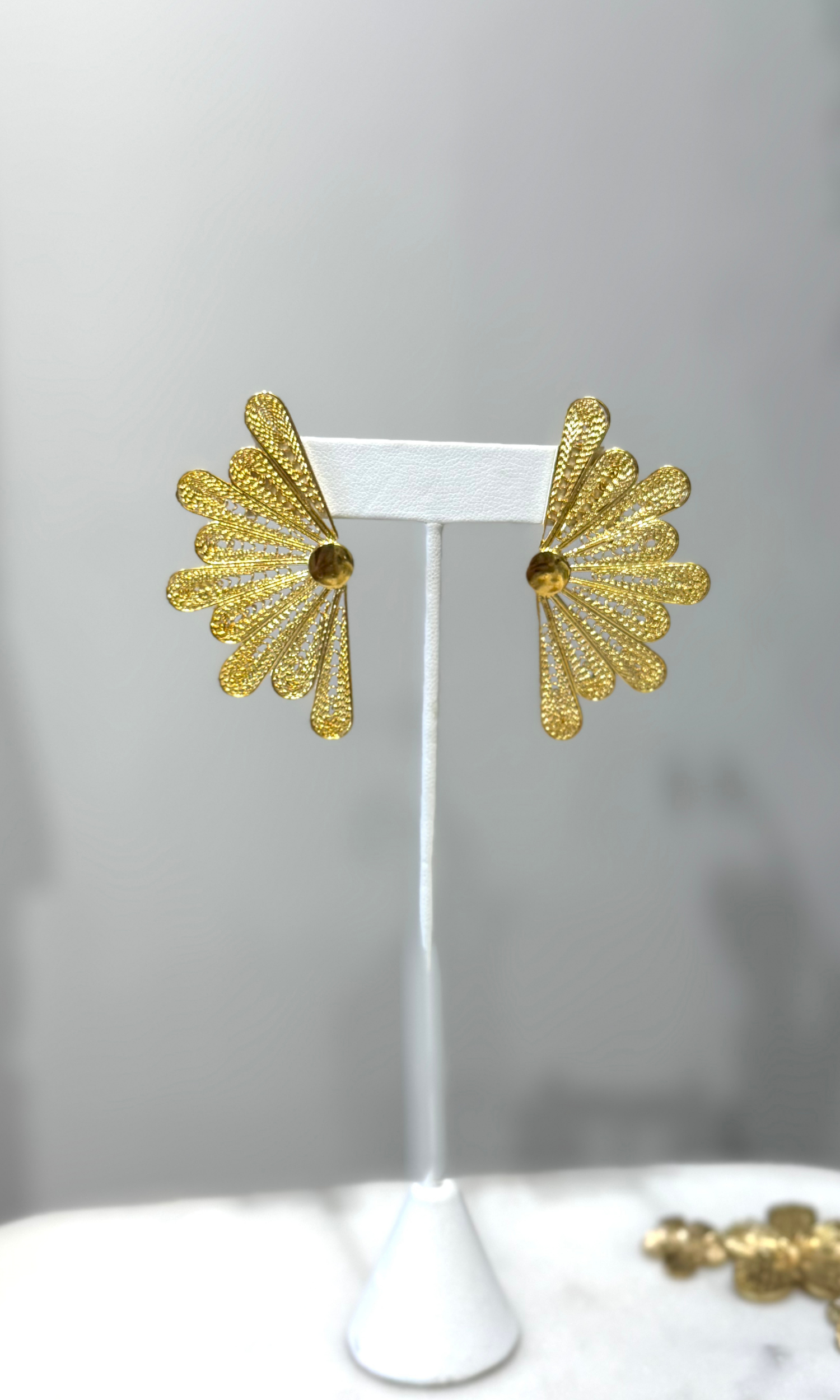 Treat yourself to these stunning earrings. This intricate design includes shimmering fan filigrana earrings. The intricate detail adds the perfect, unique touch of elegance. They'll be the perfect statement to your daily or evening look.