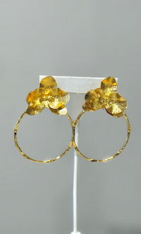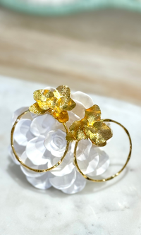 Treat yourself to these stunning earrings. This intricate design includes shimmering orchid flowers with statement hoops. The intricate detail adds the perfect, unique touch of elegance. They'll be the perfect statement to your daily or evening look.