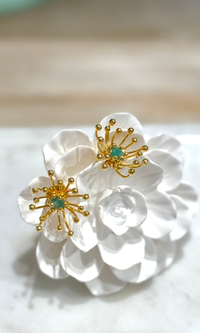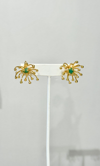 Treat yourself to these stunning studs. This intricate design includes a shimmering gold dandelion with an emerald stone in the middle. These dandelion effect makes this piece unique and captivating. They'll be the perfect statement to your daily or evening look.
