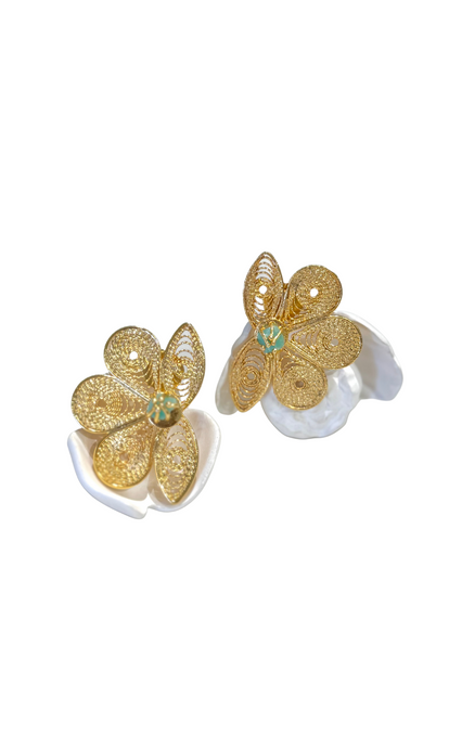 Flower Filigrana Emerald Earrings