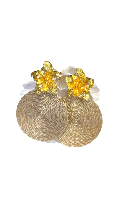 Amaryllis Flower Beige Palm Earrings