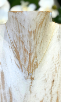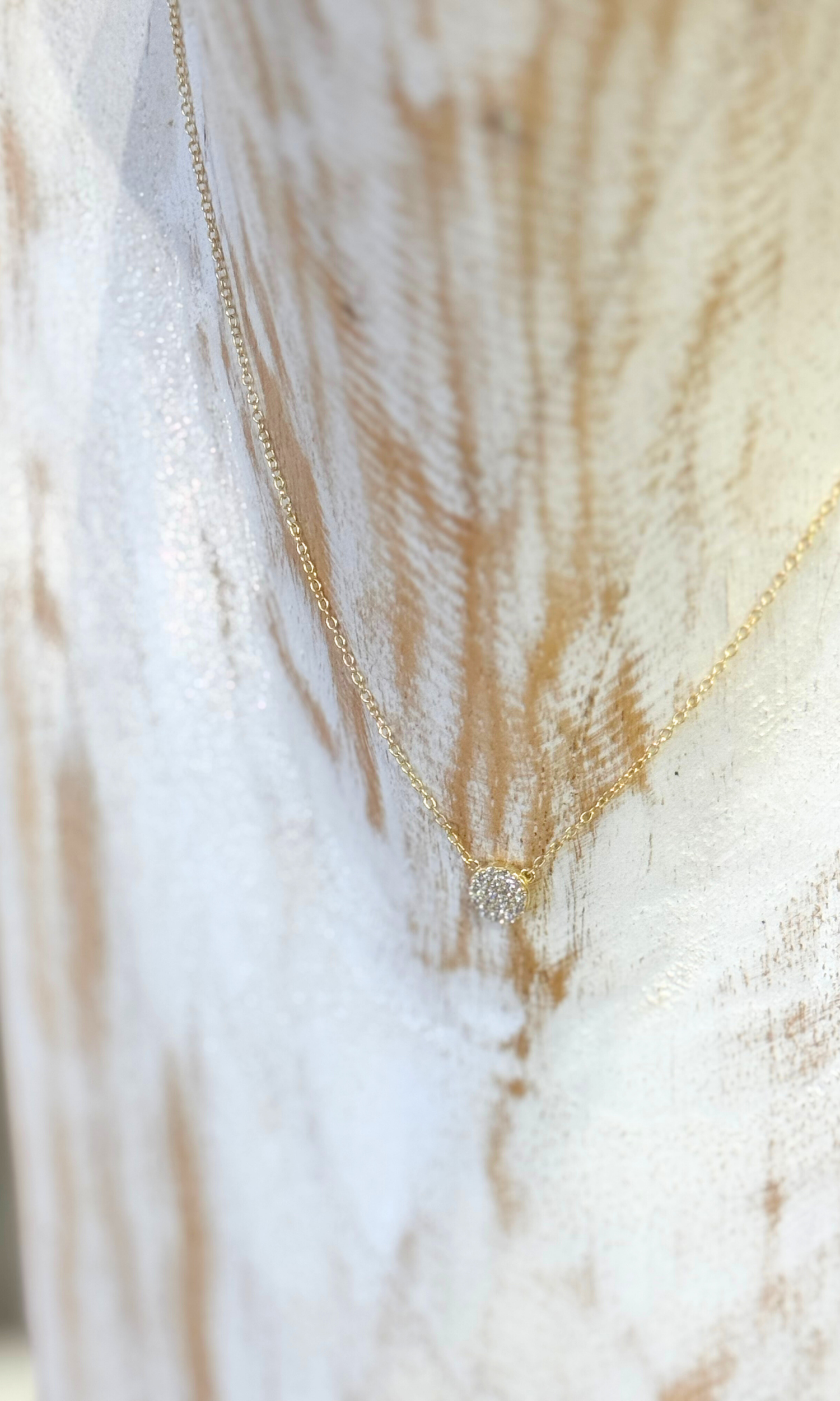 Treat yourself to this dainty necklace that has a circular diamond pendant made out of cubic zirconia on a gold plated chain. This delicate design is perfect for a night out or daily wear.