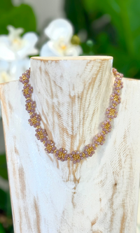 Treat yourself to this stunning necklace. This intricate design includes beaded gem crystals in the shape of a flower that forms a choker style. The intricate detail adds the perfect, unique touch of elegance. It'll be the perfect statement to your daily or evening look.
