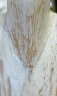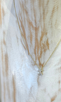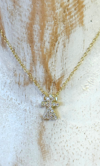 Treat yourself to this delicate and sparkly necklace with a daughter pendant. It has diamonds made out of cubic zirconia that sparkle in the light, perfect for moms.