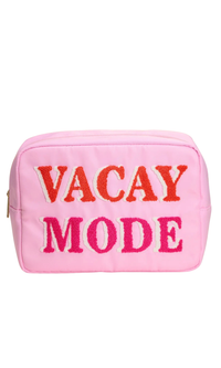 Perfect for sunny getaways, this nylon travel pouch is your go-to for beach days and vacations. Made from water-resistant nylon and embroidered with playful terry fabric letters like "VACAY MODE," it keeps your essentials secure in vibrant style. Whether you're poolside or packing for a trip, this pouch adds a splash of personality to your beach bag.