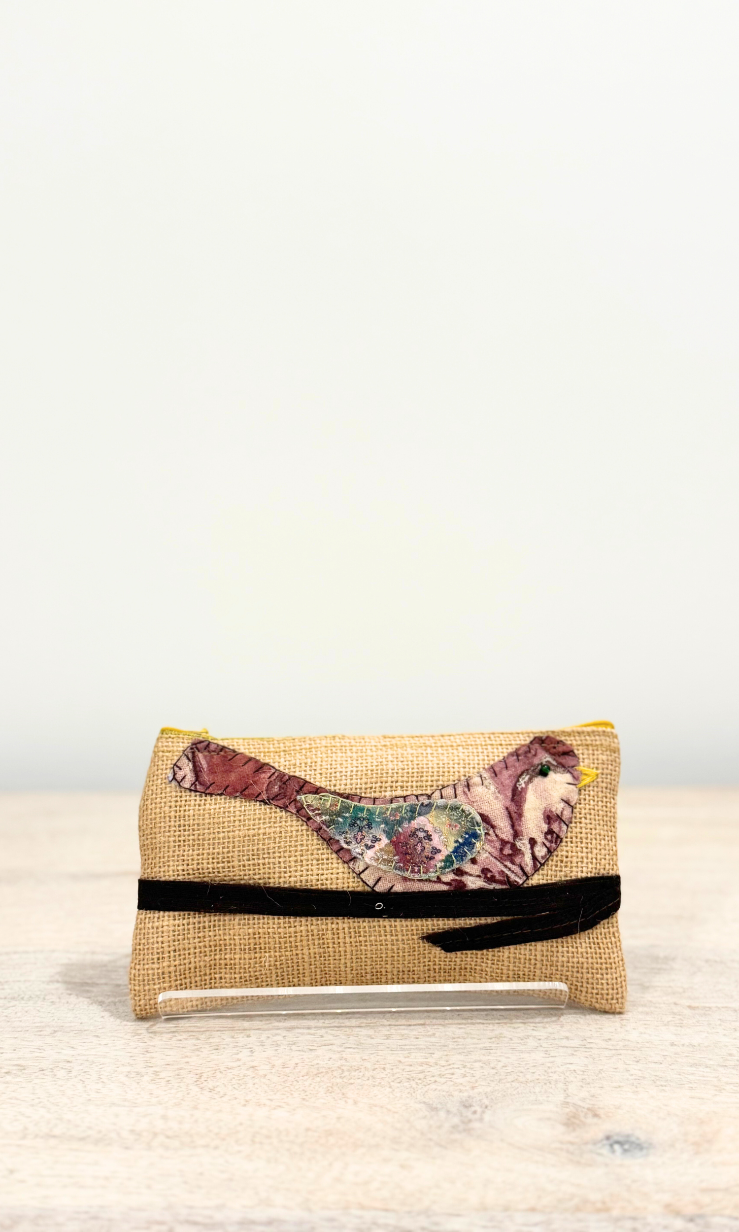 Expertly crafted from recycled materials and lined with sumptuous silk, the Bella Bird Pouch, size Medium is the ideal companion for any occasion. Handmade, each pouch features a unique design!