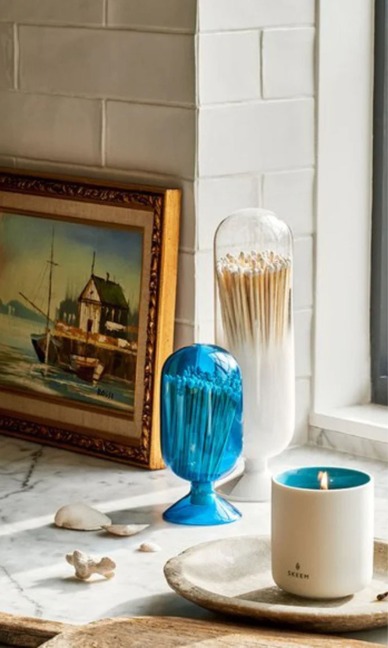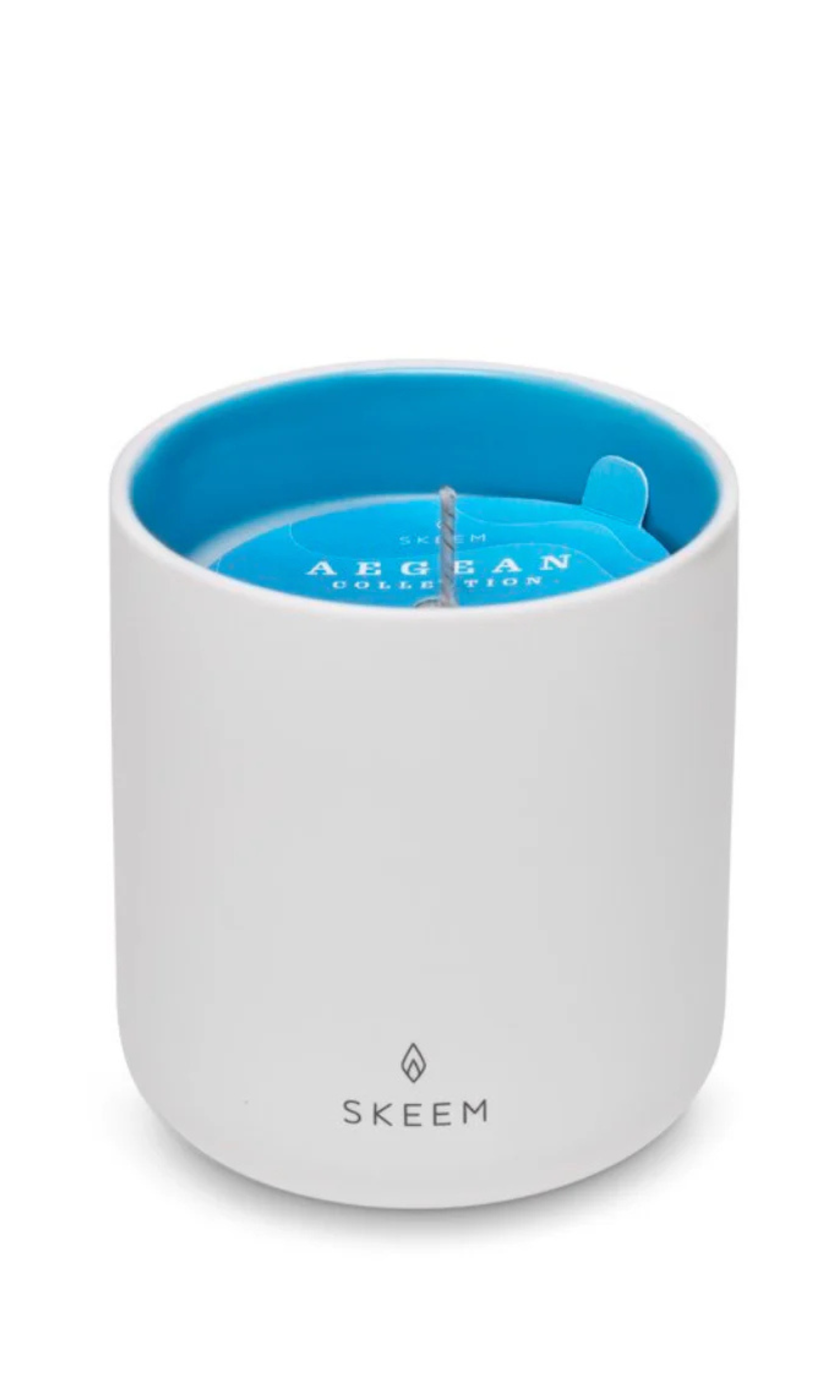 Inspired by a Mediterranean seaside escape, our Aegean candles feature unglazed ceramic vessels and two brand-new summery scents. The minimal design is lined with a glossy blue hue that reveals itself as the candle burns, reminiscent of the clear, tranquil waters that surround the Aegean coastline.