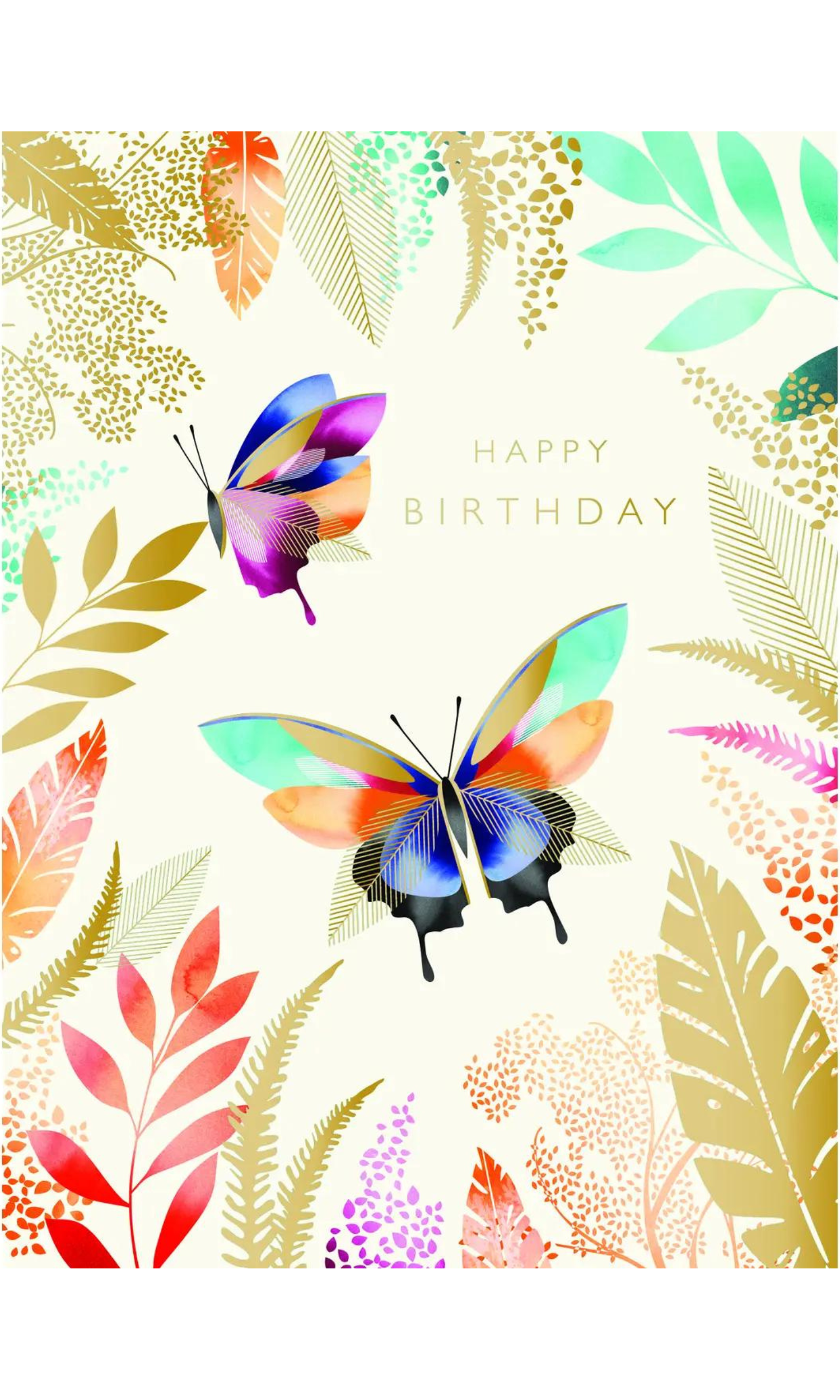 Tropical Butterfly Birthday Card adorned with vibrant flowers and butterflies, featuring intricate details to brighten their day. Make their birthday memorable with this enchanting floral and butterfly-themed card!