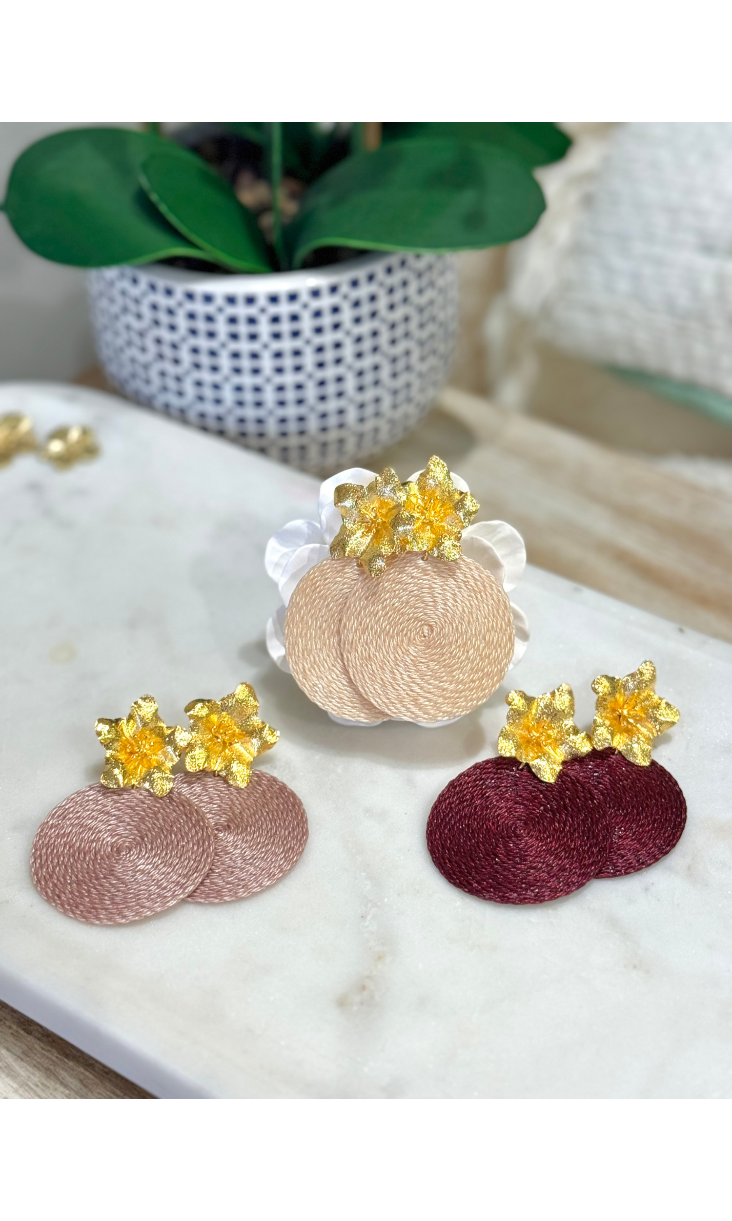 Amaryllis Flower Ivory Palm Earrings