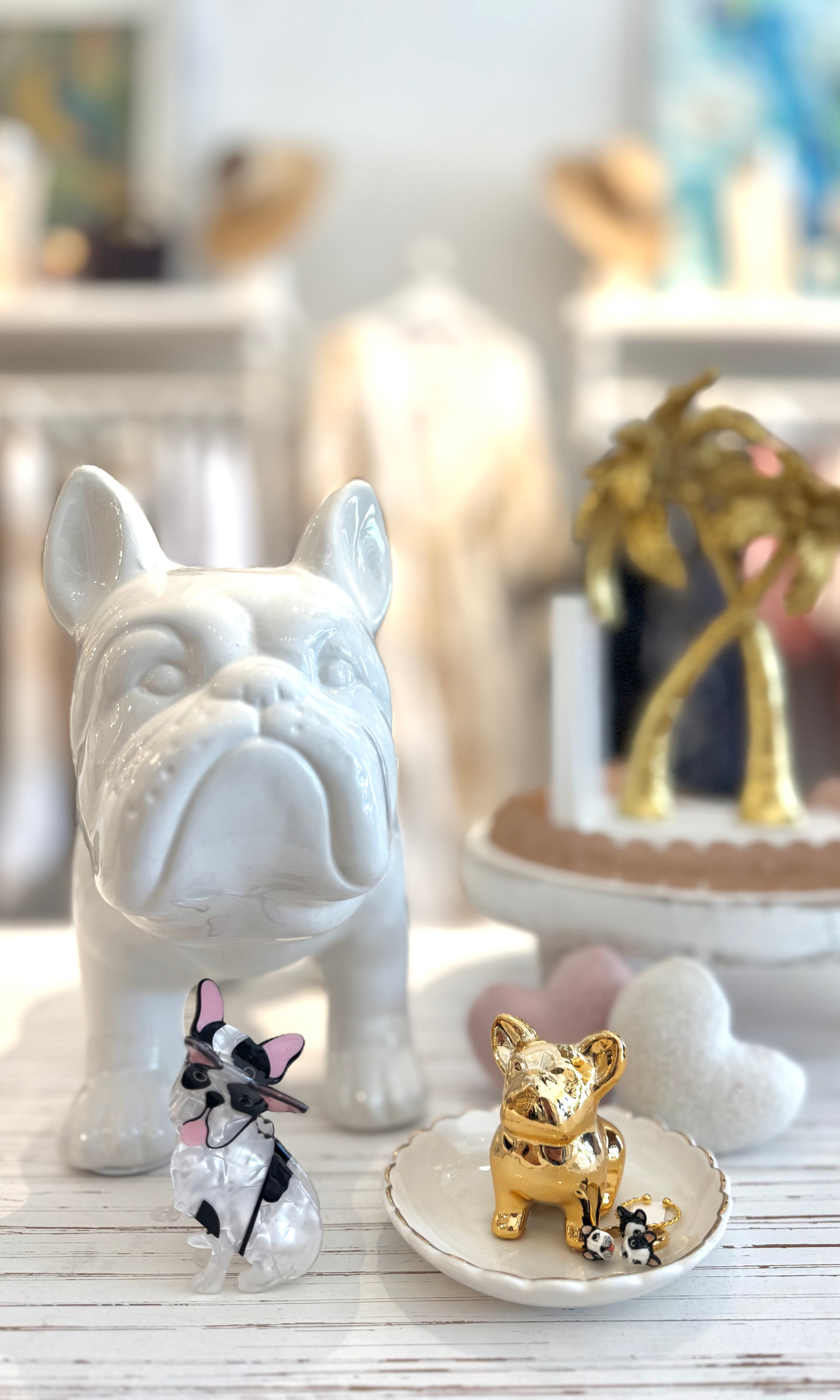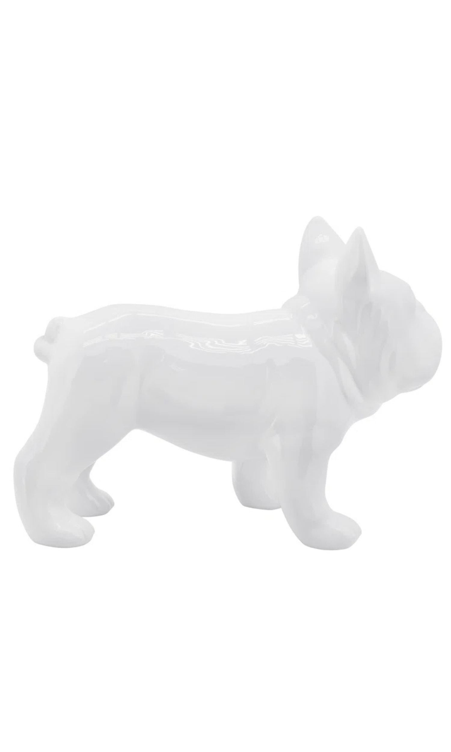 Show off your playful style with this adorable Frenchie figurine. Crafted out of high-quality ceramic, this sculpture is shaped like a standing frenchie and comes in a simple white color. Perfect for a dog lover, or a frenchie owner, gift it to a loved one!