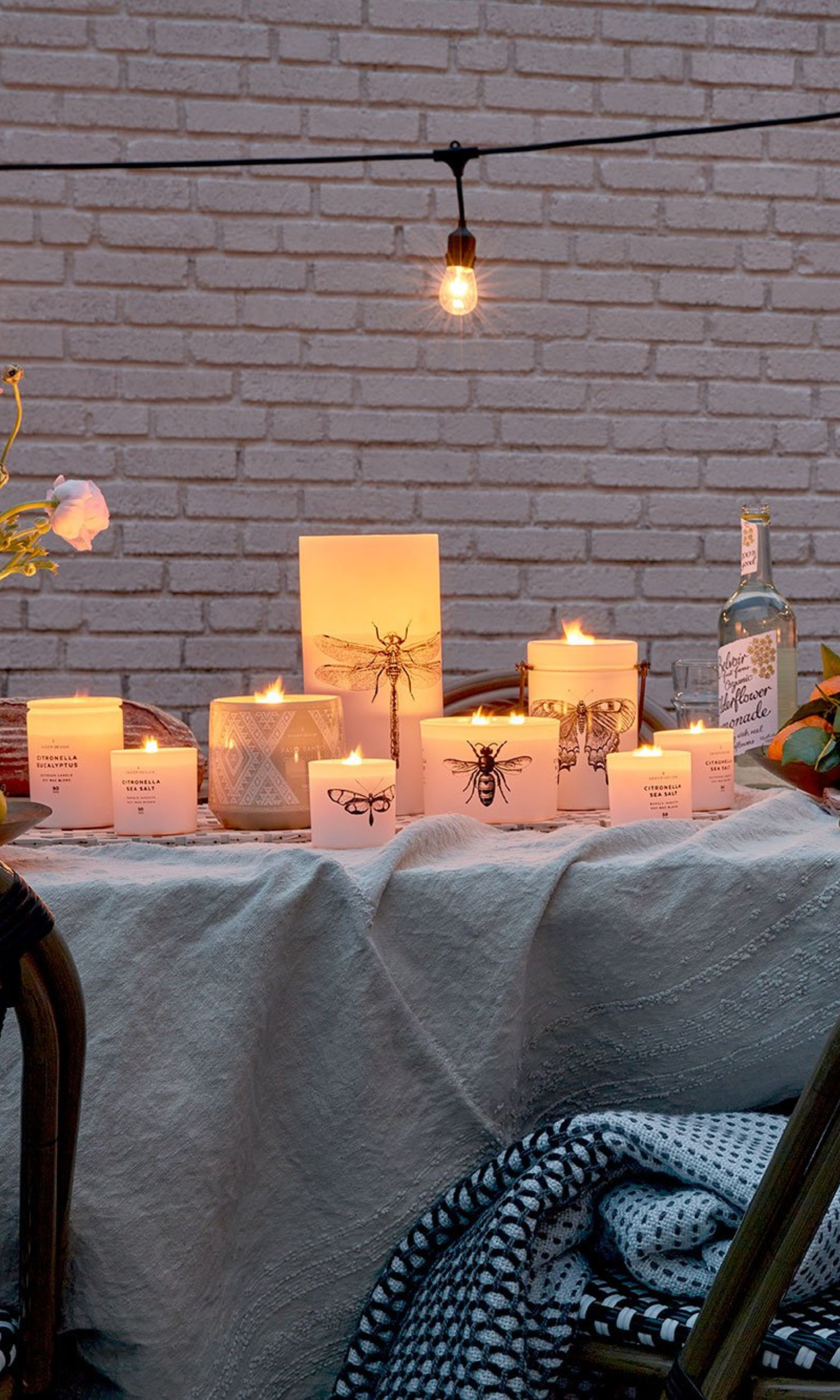 Our Citronella Citrus & Basil scent features citronella and lemongrass blended with bright citrus peel and green basil. Hand-poured in the USA with a soy base, these stylish 3-wick candles offer maximum scent throw to keep bugs at bay.