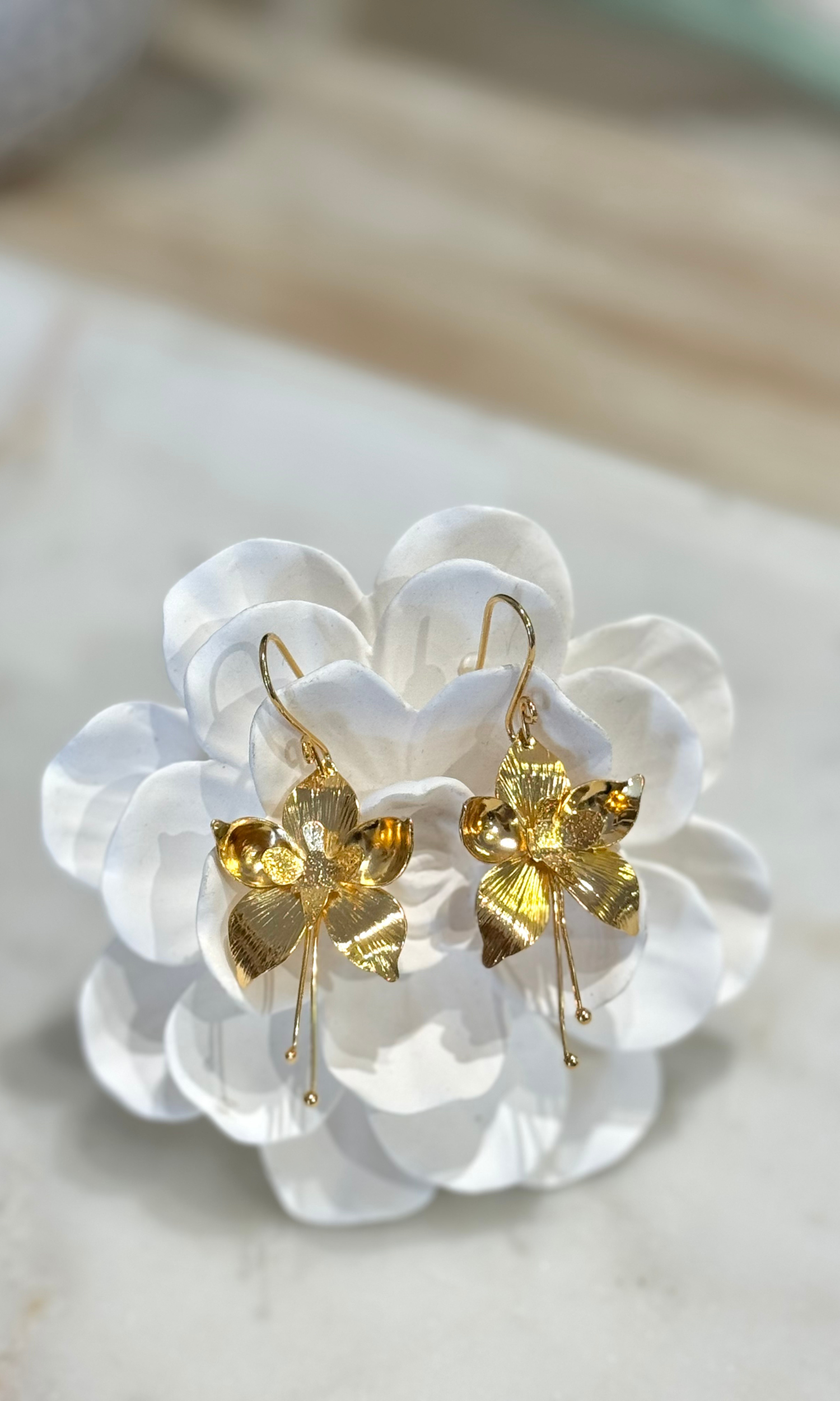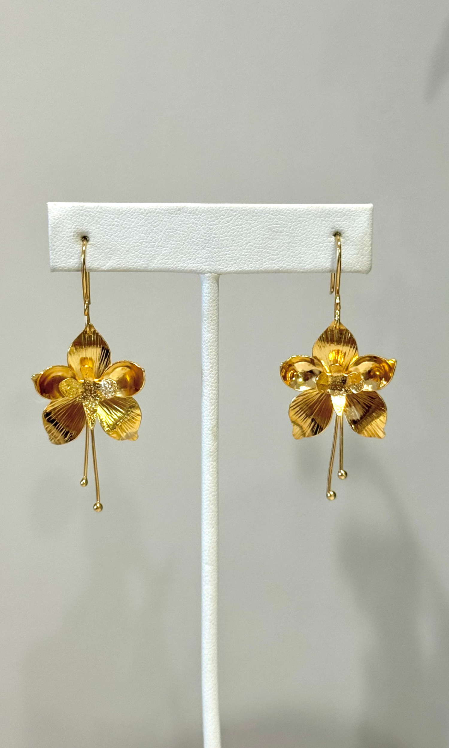 Treat yourself to these stunning earrings. This intricate design includes shimmering daingling amaryllis flowers. The intricate detail adds the perfect, unique touch of elegance. They'll be the perfect statement to your daily or evening look.