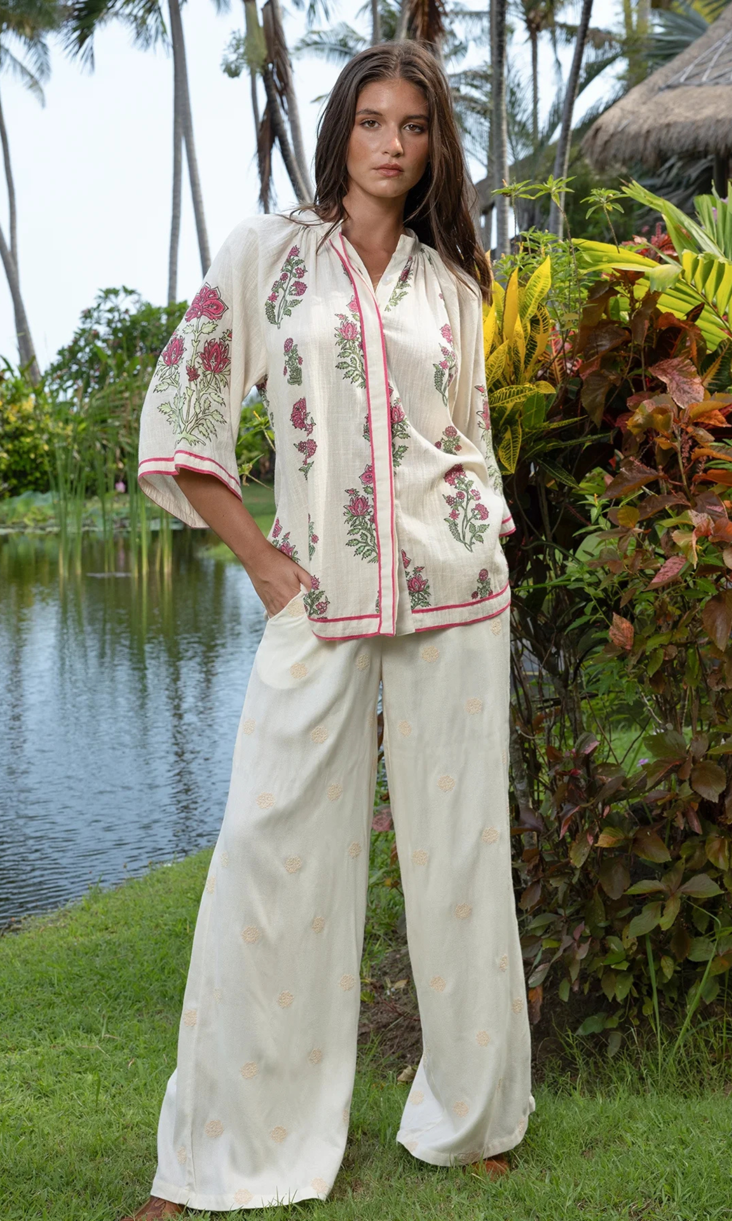 The Tara Pants embody the very essence of boho chic style, blending sophistication and creativity in a refined piece with timeless charm. Designed to enhance your figure with its flowing cut and delicate minimalist embroidery, it perfectly combines feminine elegance with a sense of adventure. A true invitation to travel for independent women inspired by the boho chic art of living and steeped in refinement.