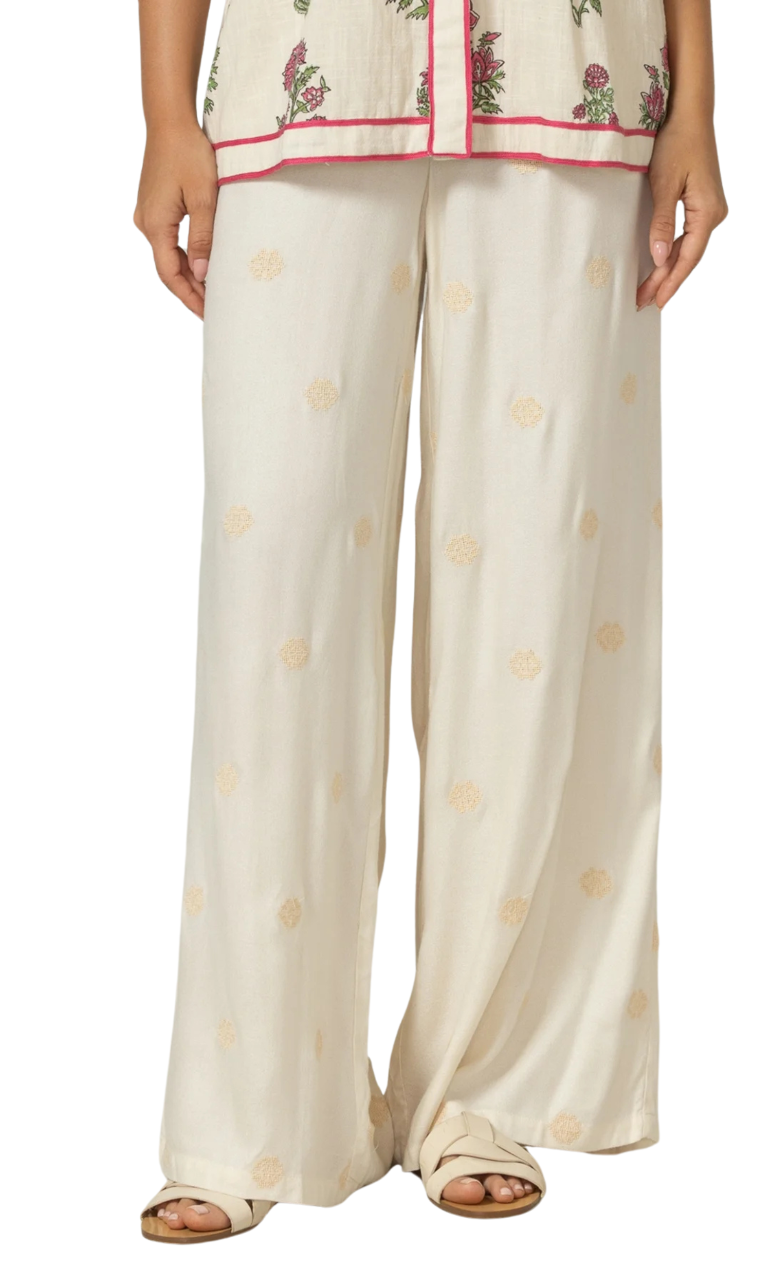 Ecru Tara Rayon Wide Pants