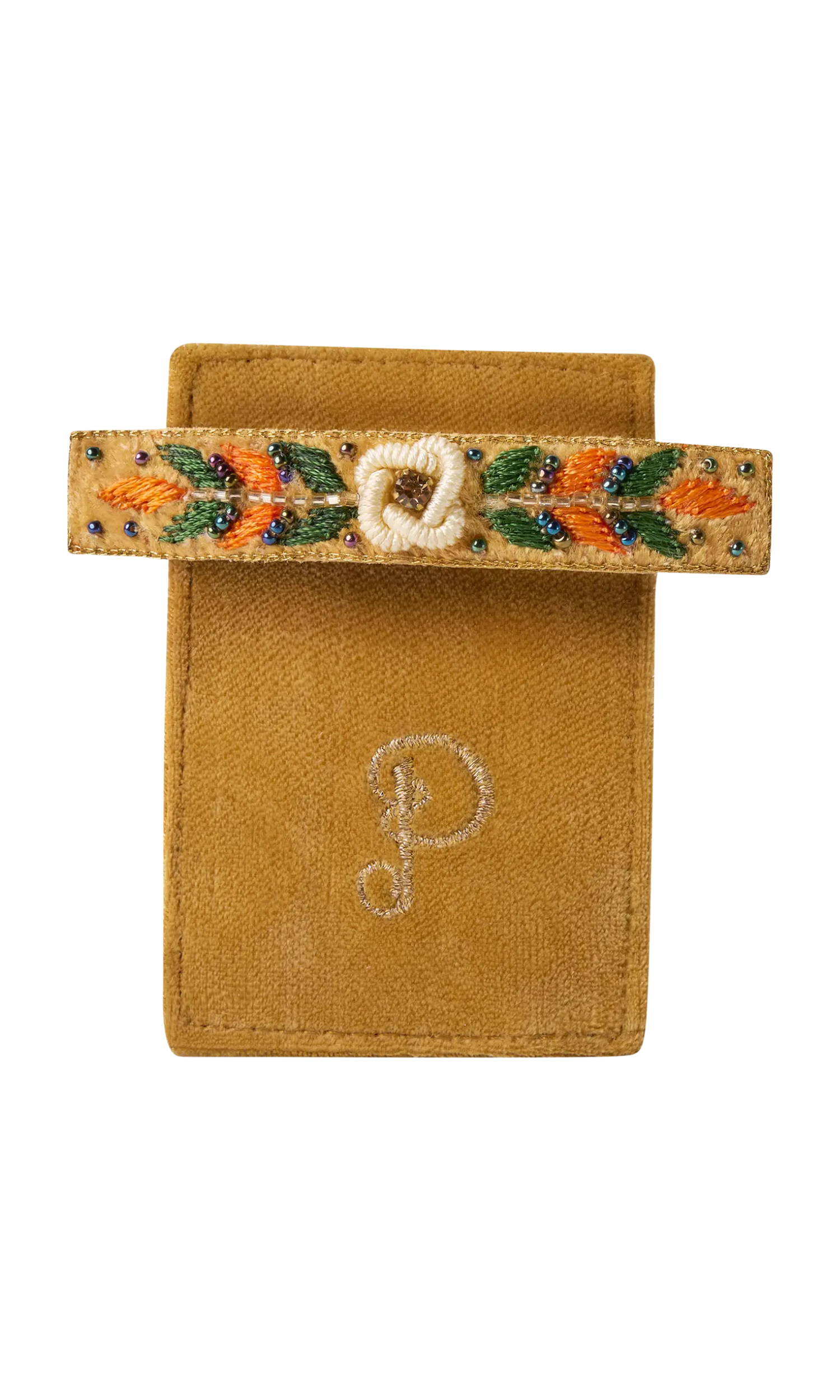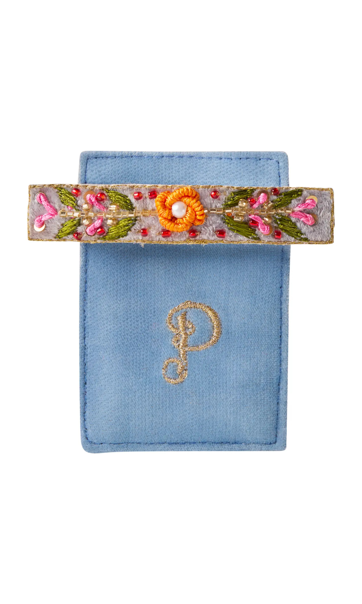 Transport yourself into divine feminine energy with our luxurious embroidered barrette in yellow, green, and blue. Sure to bring effortless elegance and femininity into your everyday. The floral vine design inspires nostalgia with a twist of playful spirit.