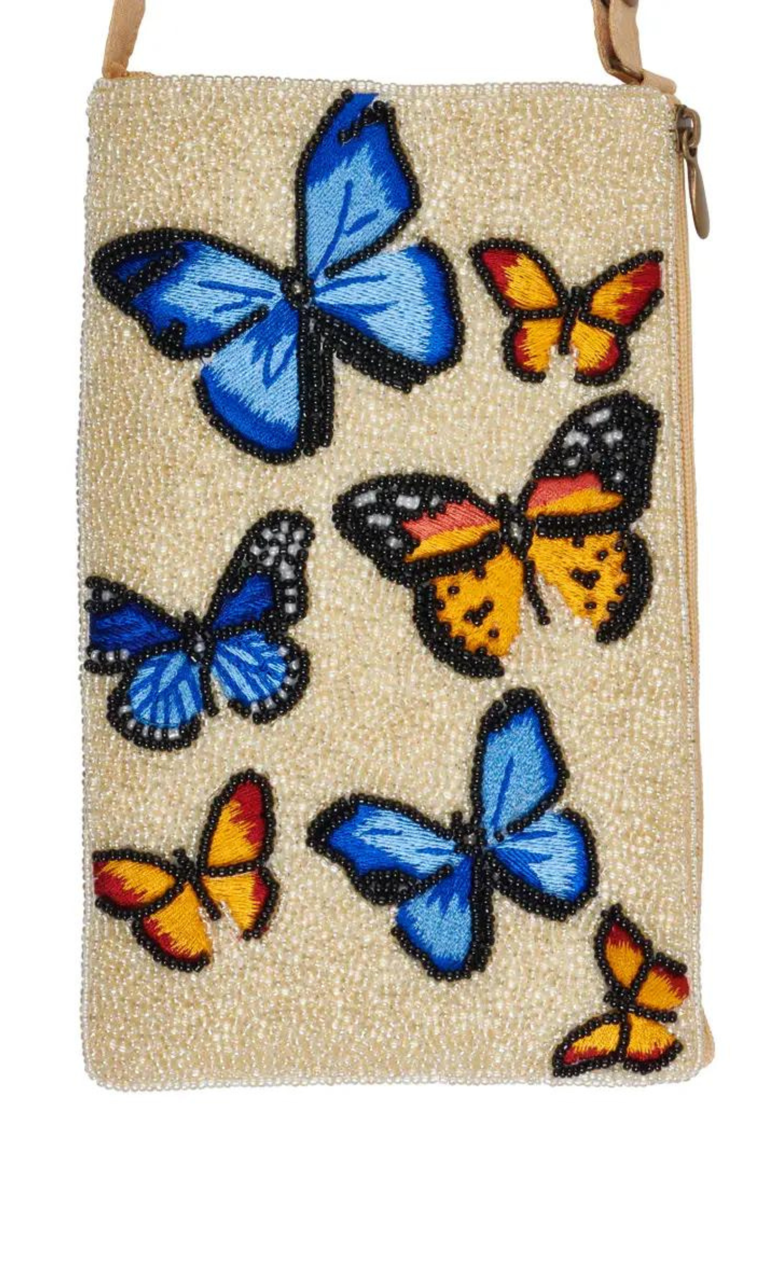 This stunning beaded bag features a butterfly design perfect for adding a touch of glamour to any outfit. Hand beaded by artisans in India, this versatile bag can be used as a crossbody bag, wristlet, or unclipped by the strap to revamp into a purse on the go.