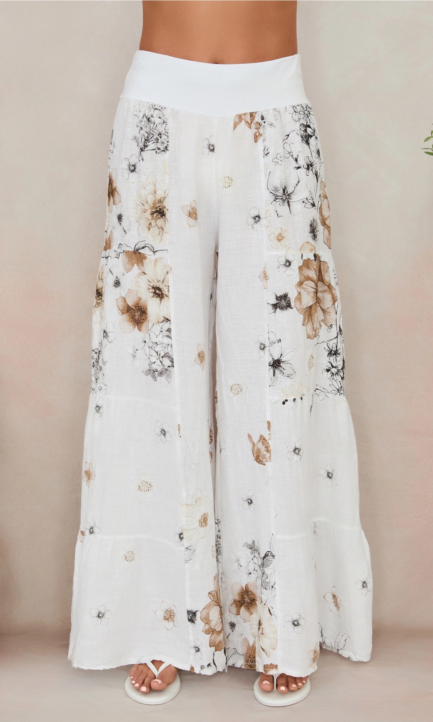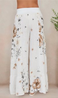 Floreale White Linen Palazzo Pants