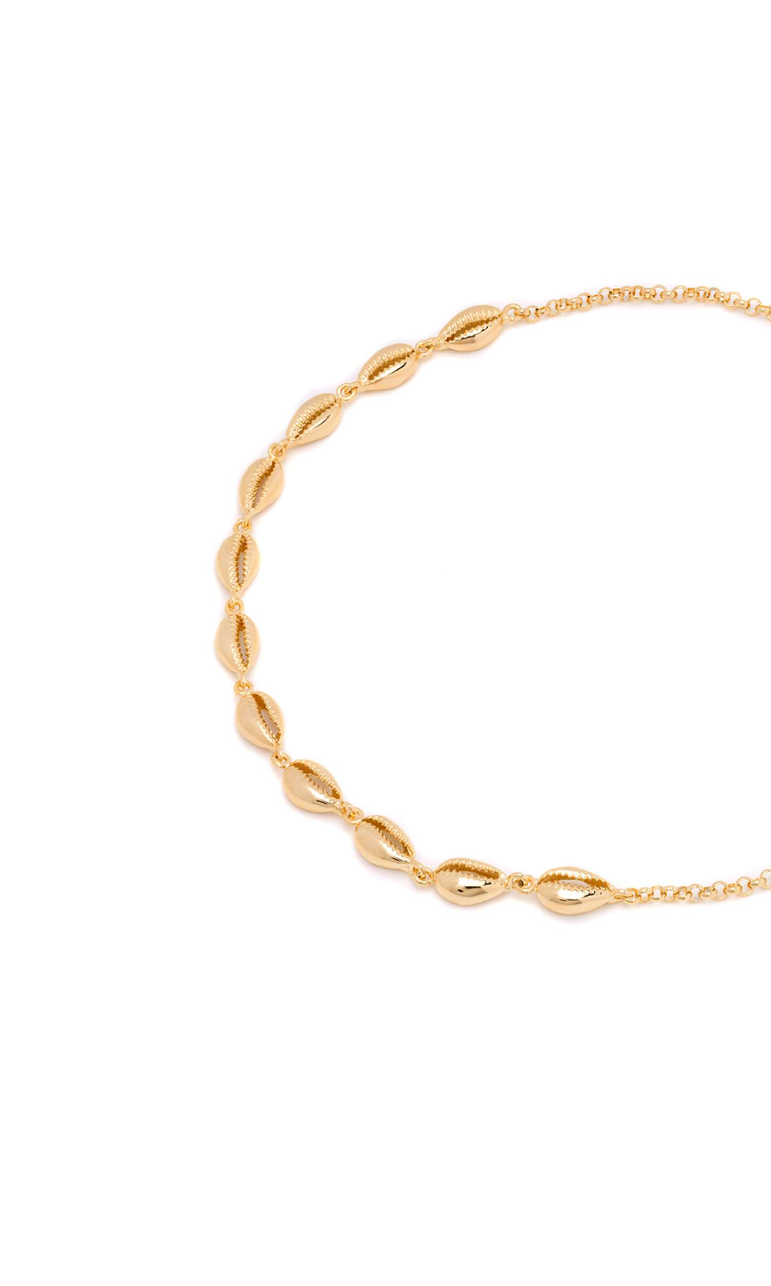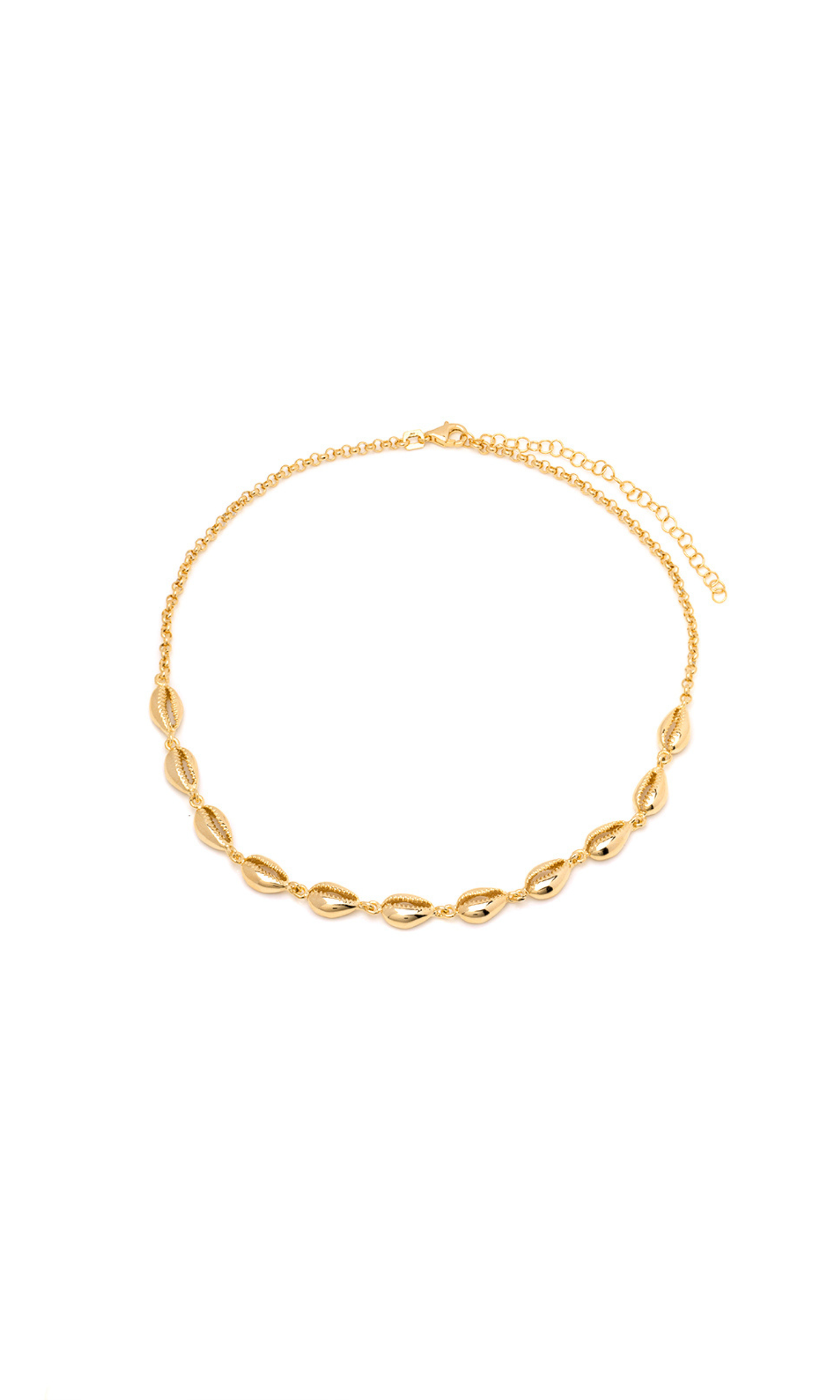 This gold shell necklace will make your getaway even better. It adds the perfect balance of beachy, girly, and dainty to any of your looks. It's the perfect accessory to layer with a choker.