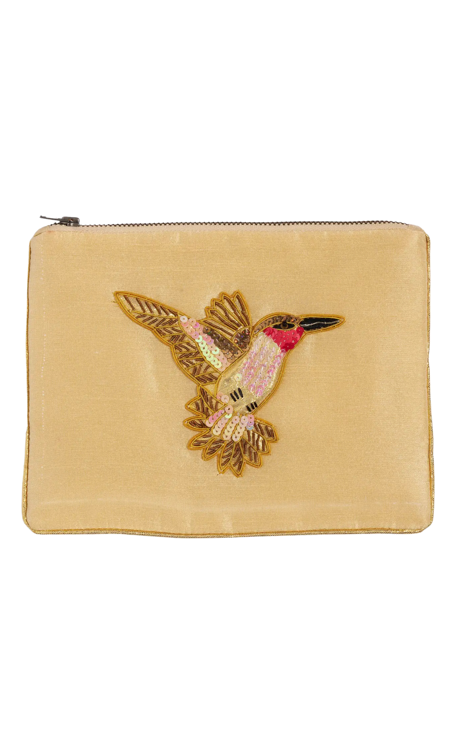 Hummingbird Embroidered Gold Pouch