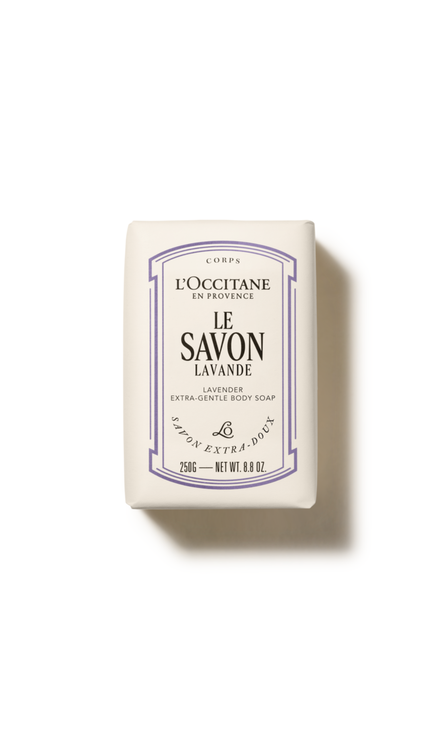 Enriched with Shea Butter, the Le Savon Lavender Extra-Gentle Body Soap (formerly known as Shea Lavender Extra-Gentle Soap) is one of our best body soaps for a gentle and luxurious cleanse. Delicately cleansing the skin, it envelops you in the relaxing and soothing notes of lavender, accented by floral hints of jasmine—like a poetic dream of violet-hued oceans under the sun.
