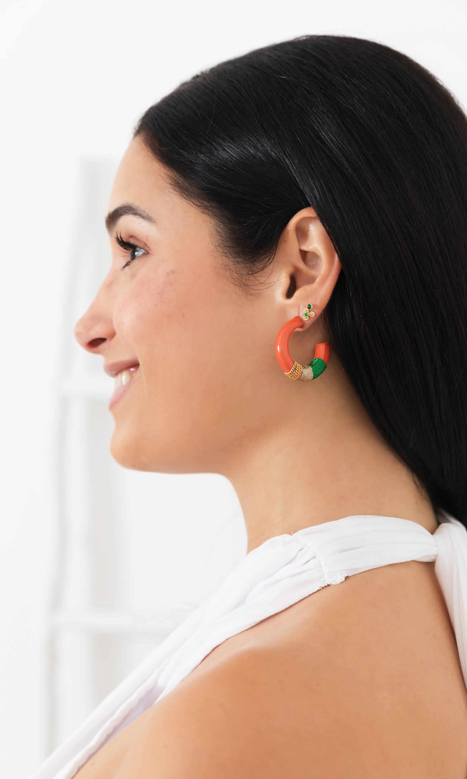 These hoop earrings are bright and bold, perfect for making any outfit pop! Treat yourself to something new. More of a coral color in person.