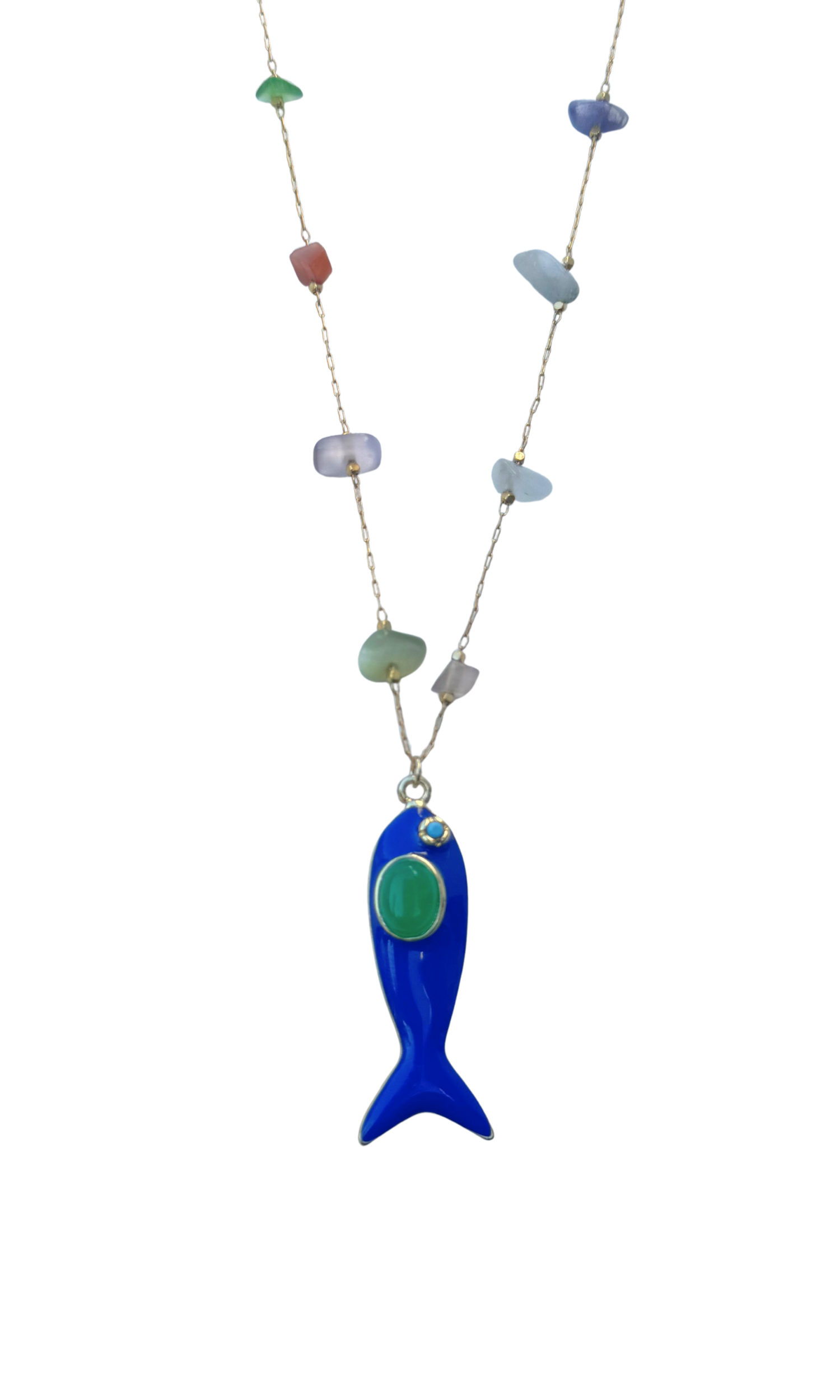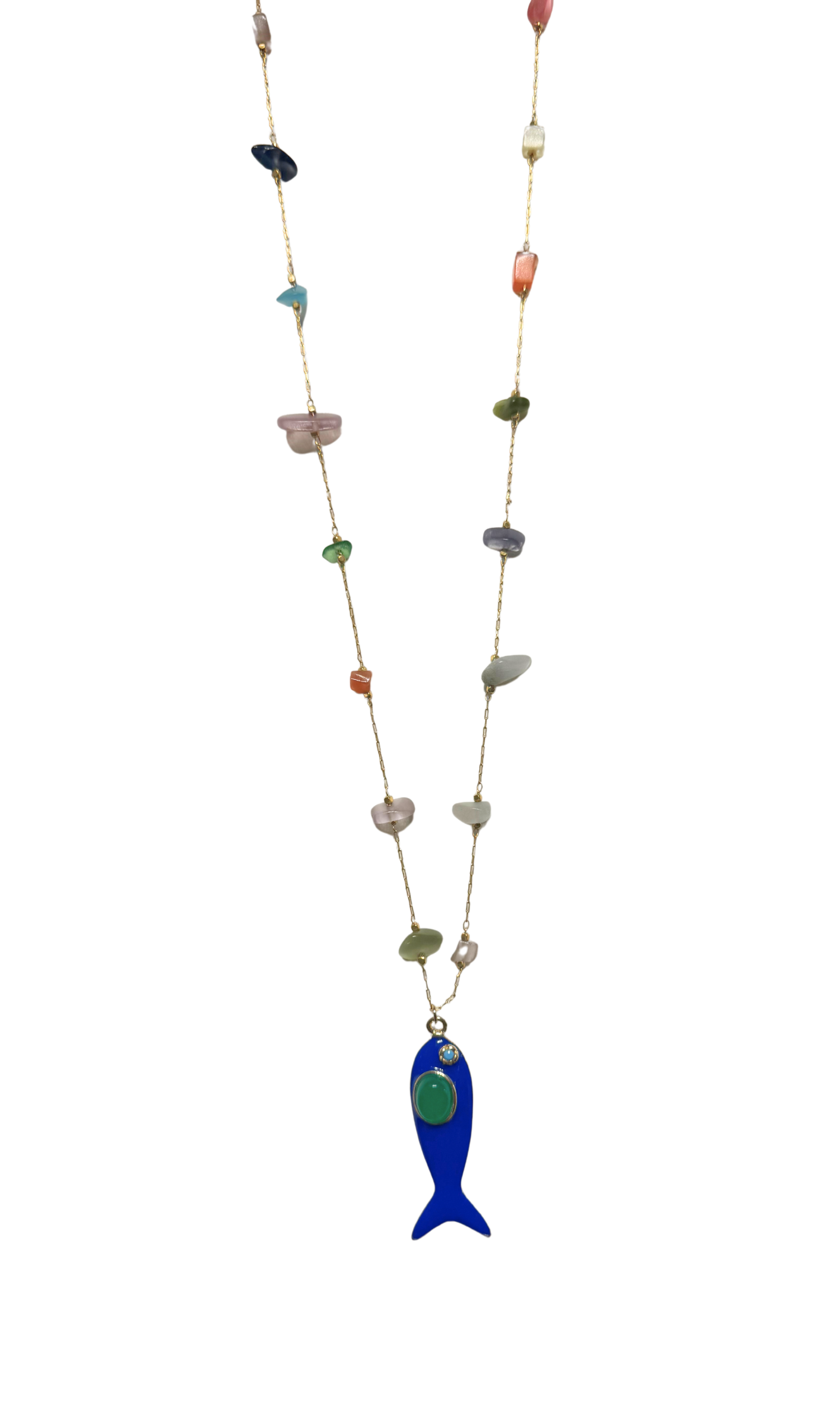 Lucky Fish Semiprecious Stones Long Necklace - Blue