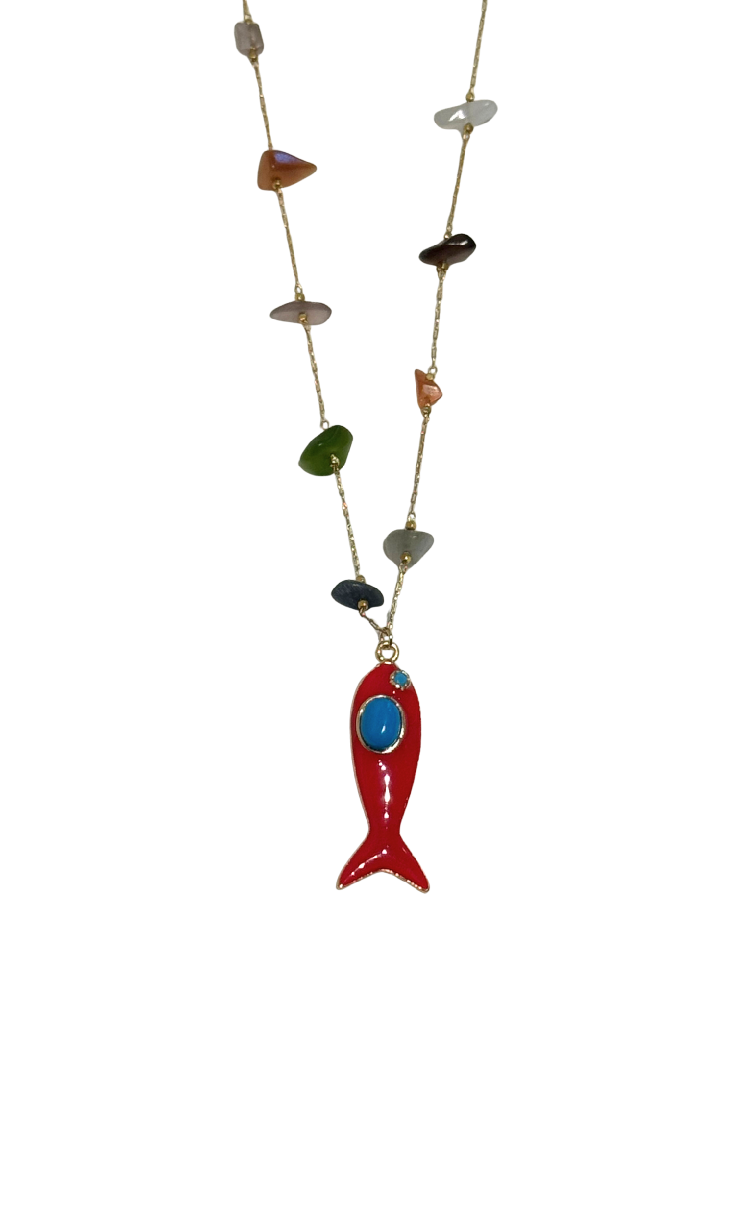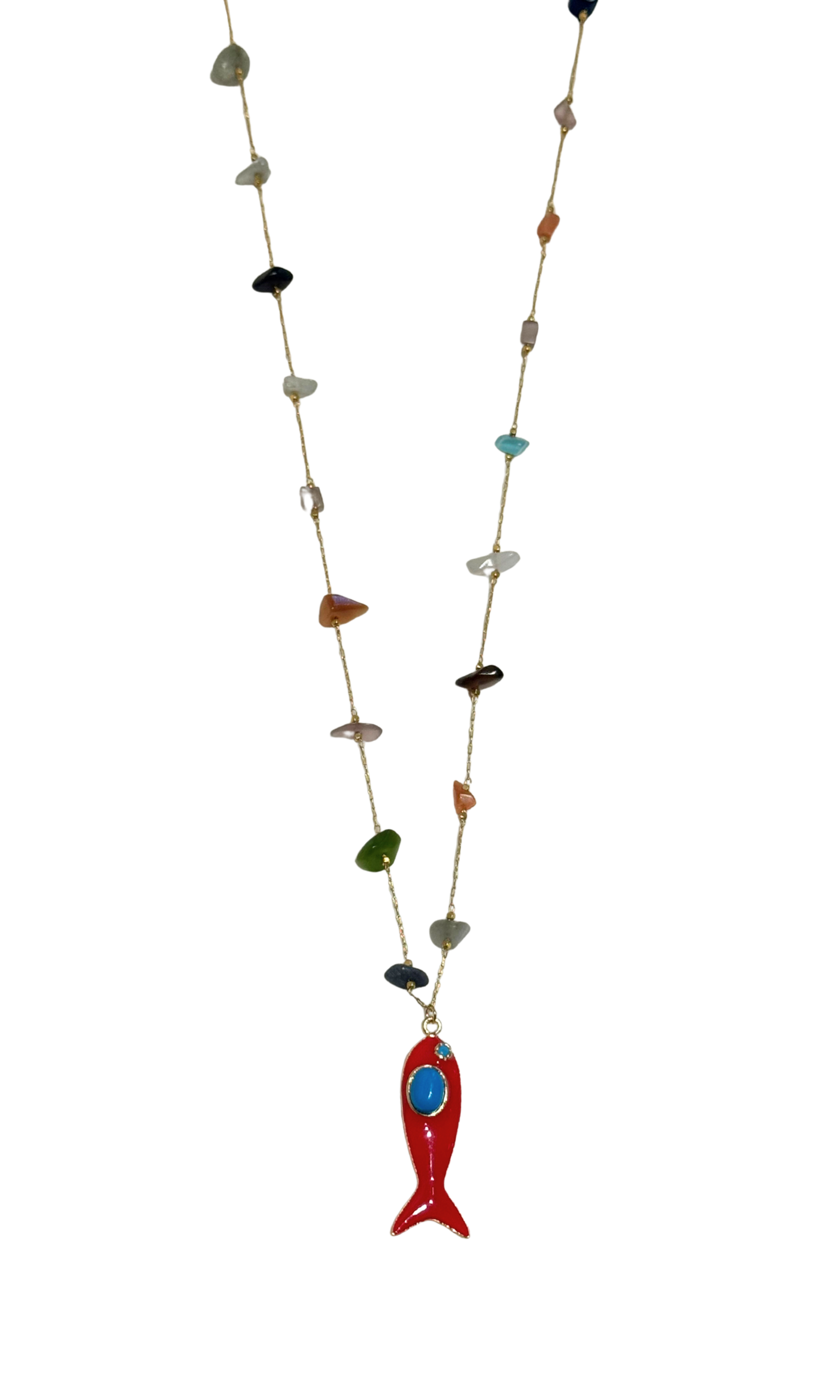 Lucky Fish Semiprecious Stones Long Necklace - Red