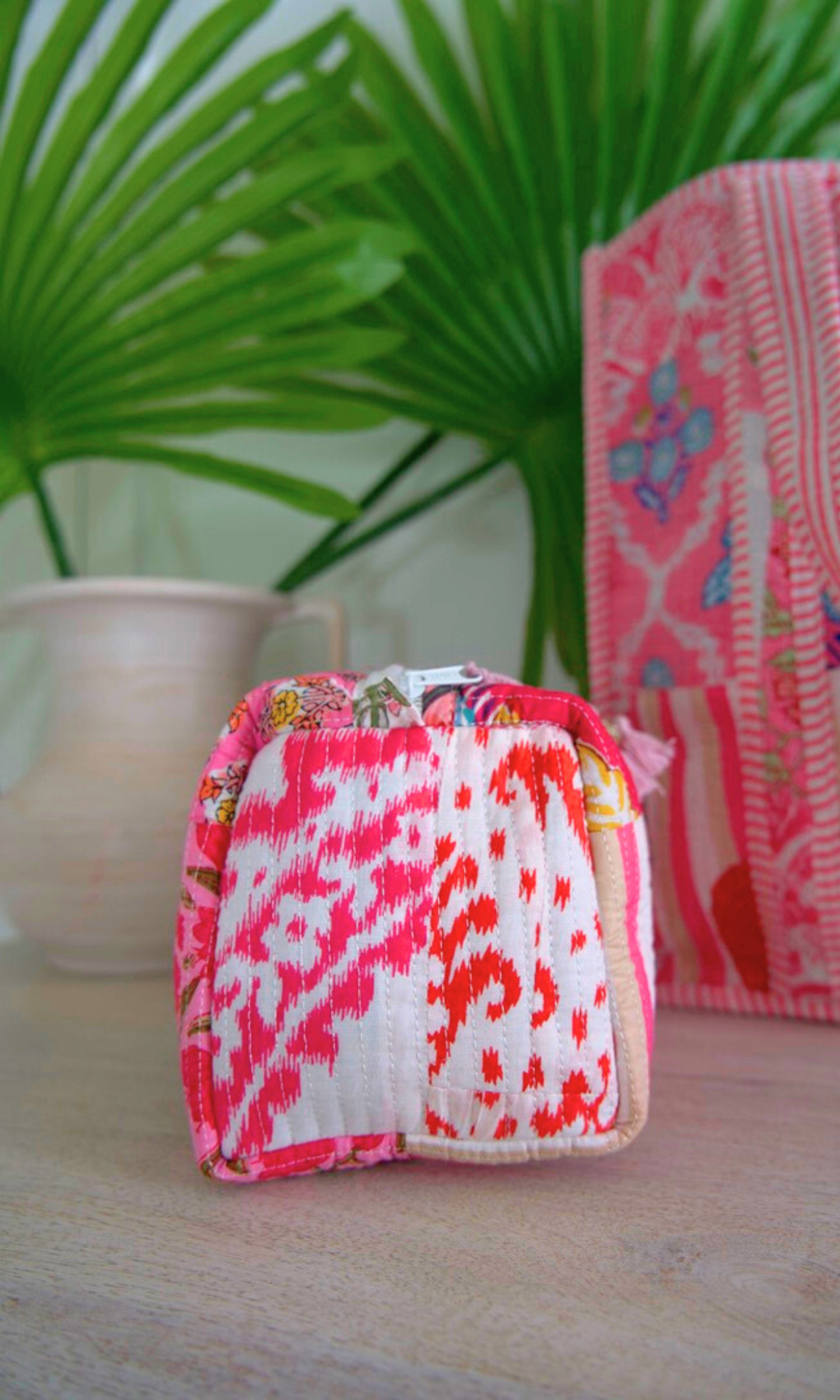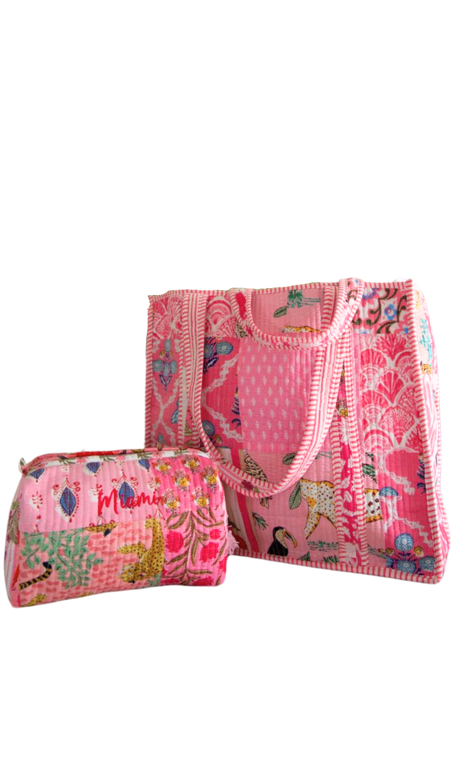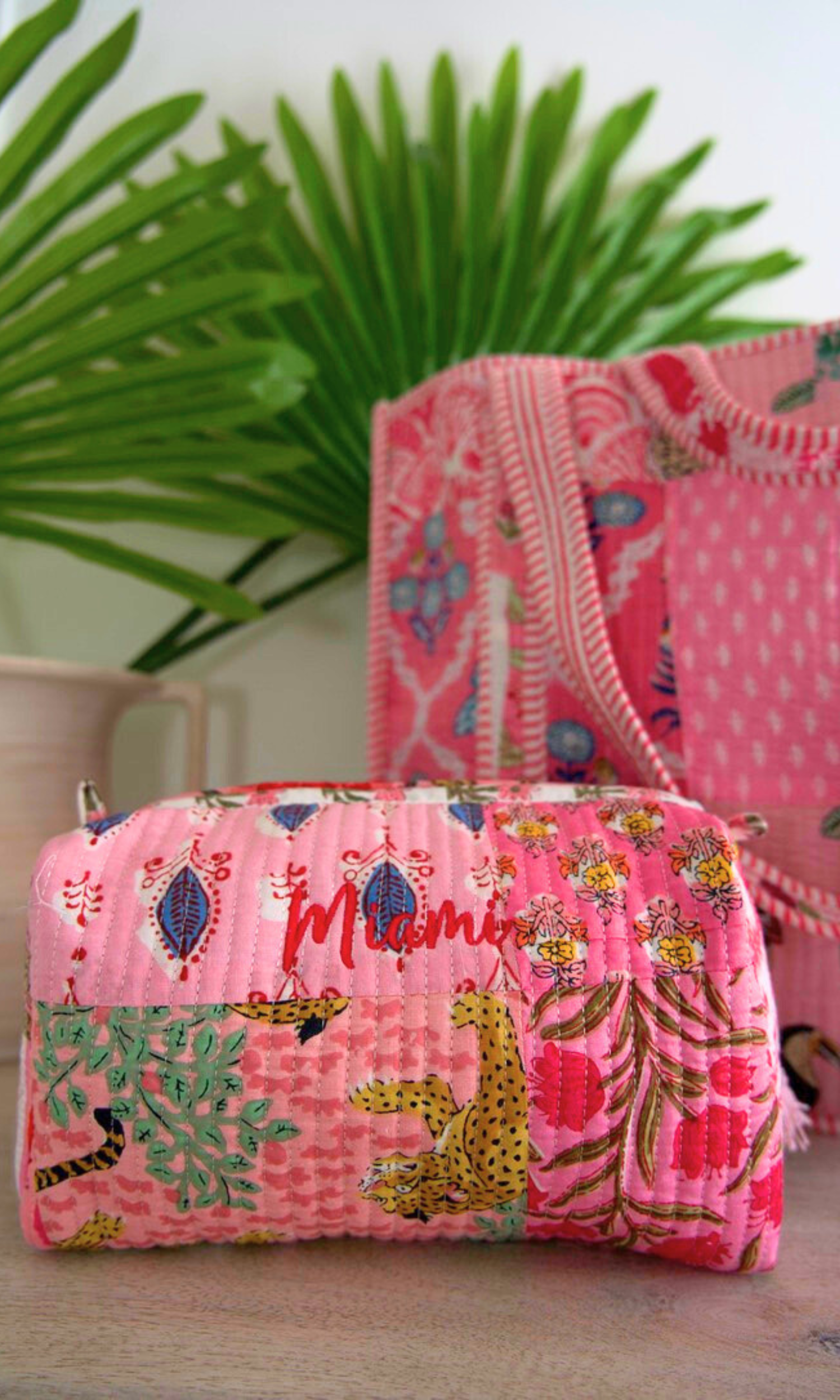 Our Miami Tote and Pouch Set will make the perfect gift, keeping you organized snd stylish every day. The pouch features the word "Miami" embroidered on one side. It's perfect to throw in cosmetics, and essentials. The set is easy to clean and pouch has a water-resistant lining. The feminine quilted pattern is perfect, coquette, and stylish.