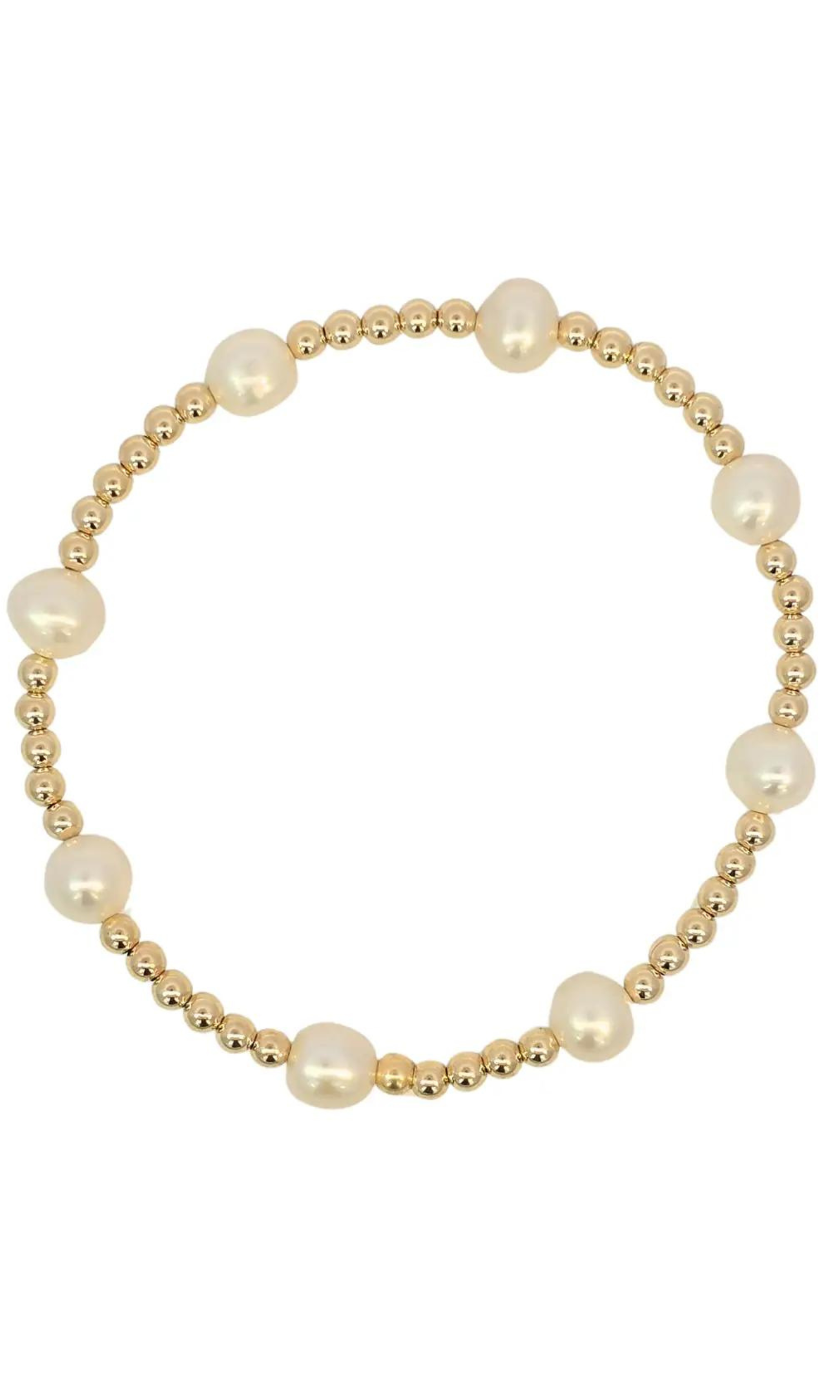 Gold Beads with Pearls Stretch Bracelet
