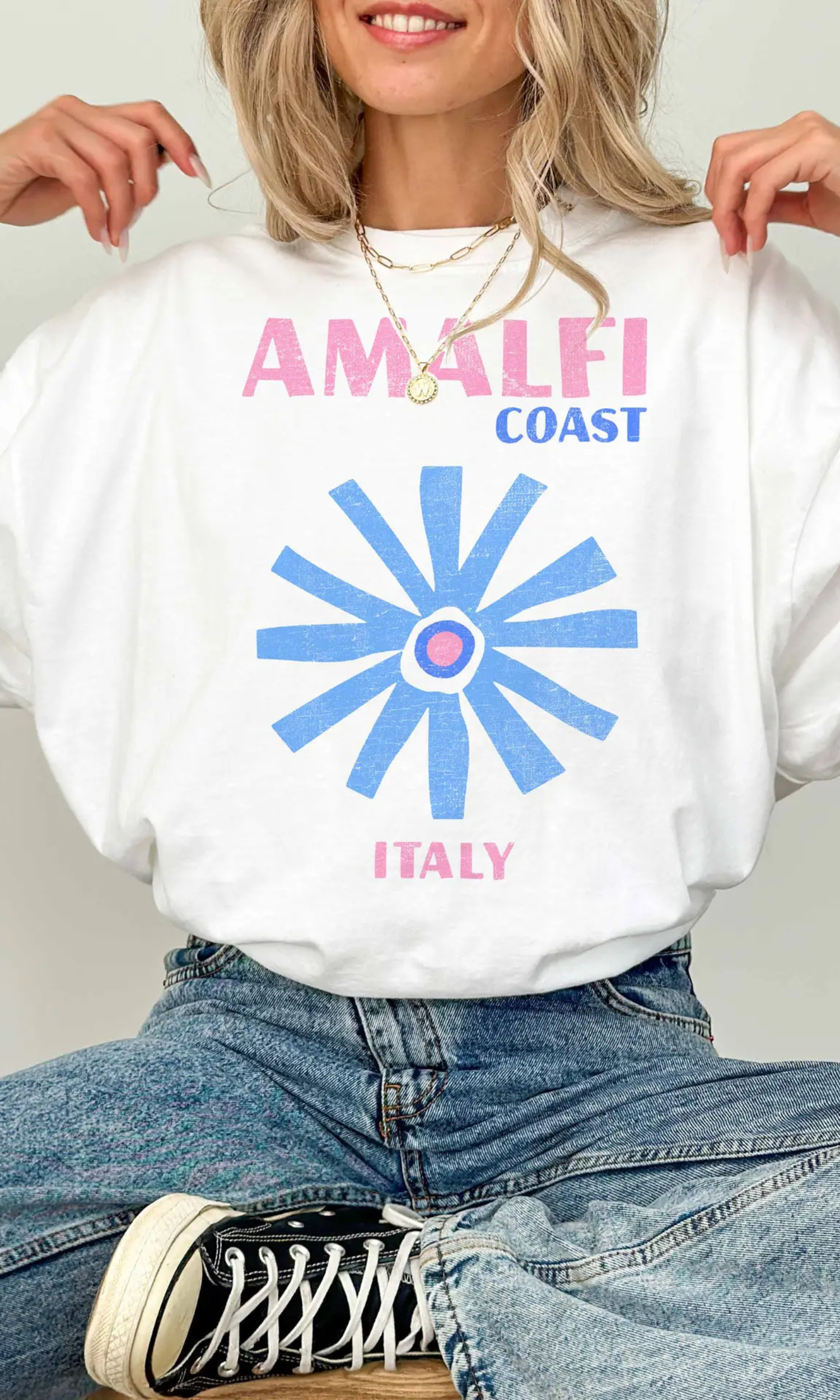 Introducing our Oversized Amalfi Coast Graphic Short Sleeve T-Shirt, the epitome of casual chic with a touch of coastal artistry. Crafted to perfection, it boasts a fitted silhouette, this short sleeve shirt has a relaxed/boyfriend-fit and will have you comfortable and chick all throughout summer.