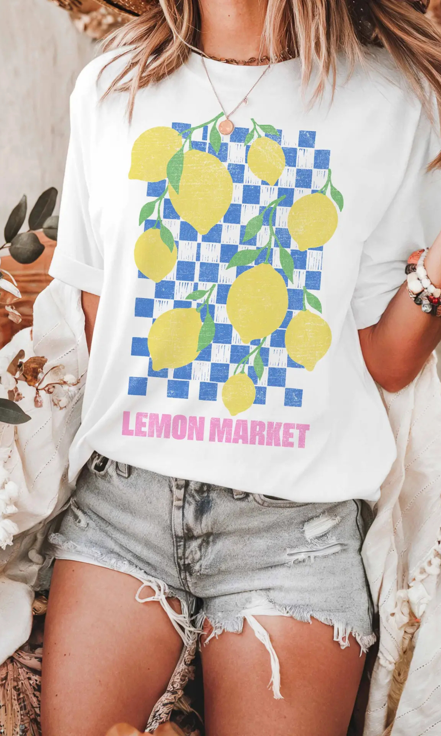 Introducing our Oversized Lemon Market Graphic Short Sleeve T-Shirt, the epitome of casual chic with a touch of small town charm. Crafted to perfection, it boasts a fitted silhouette, this short sleeve shirt has a relaxed/boyfriend-fit and will have you comfortable and chick all throughout summer.