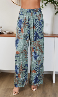 Tuscany silky viscose palm pattern palazzo pants. Stunning Italian silky viscose palazzo pants with a palm pattern, perfect for any chic and sophisticated look. Luxuriously soft fabric and slim silhouette flatter your figure for an elegant look. Complete your outfit with style and sophistication.