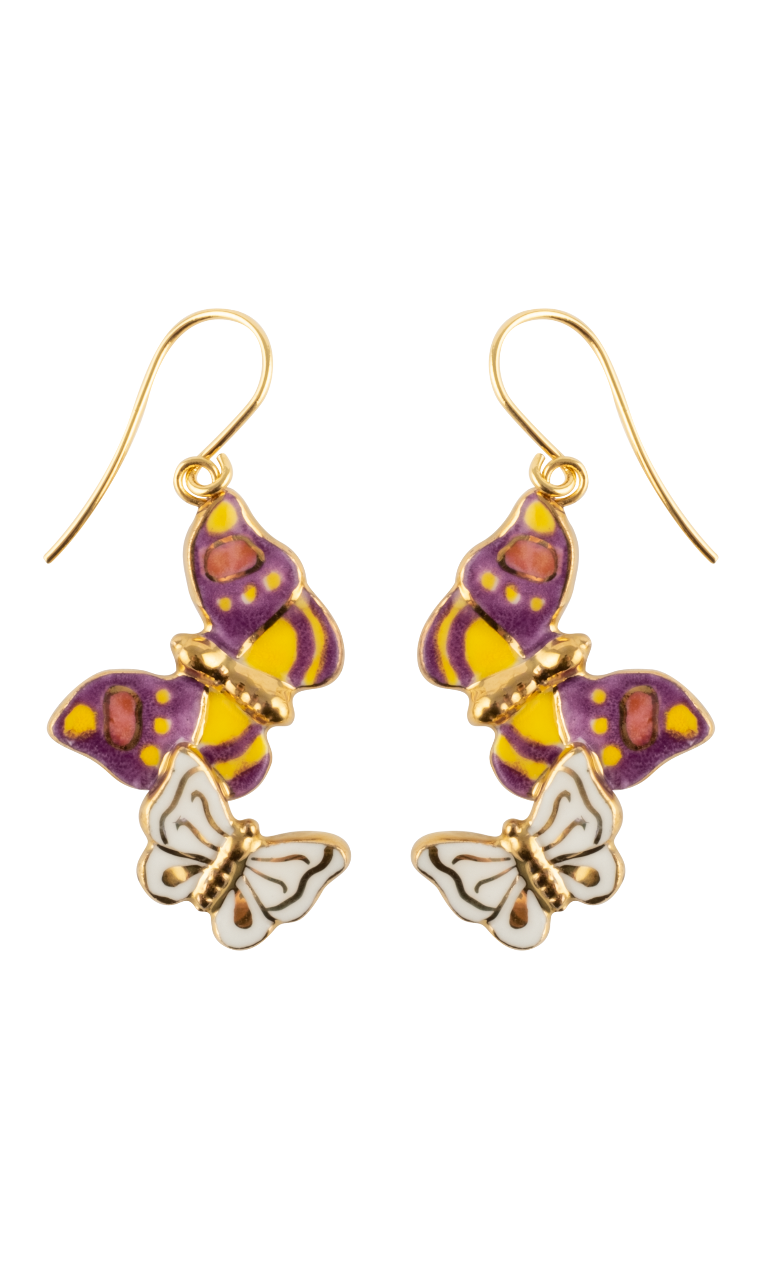 The porcelain of our Butterfly Dangle Earrings is made and painted by hand which makes it unique. The purple and white butterflies make this piece both bold and feminine. Treat yourself to something new to make your outfit pop!