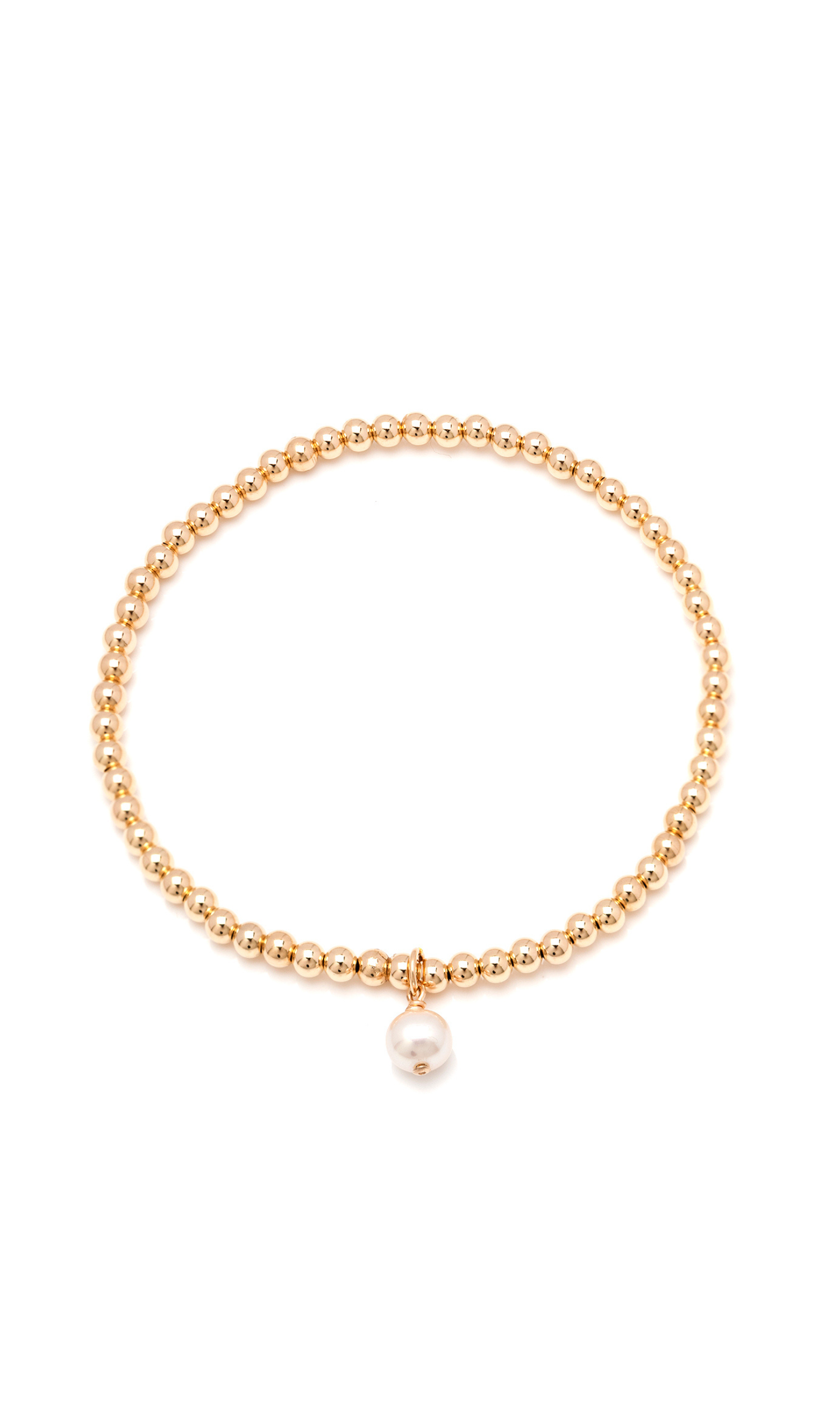 This simple beaded bracelet is perfect for adding a dainty accessory to your wrist. This adjustable bracelet features a single small pearl surrounded by small gold beads. Wear it alone or stack it with our bracelets for the perfect feminine look.