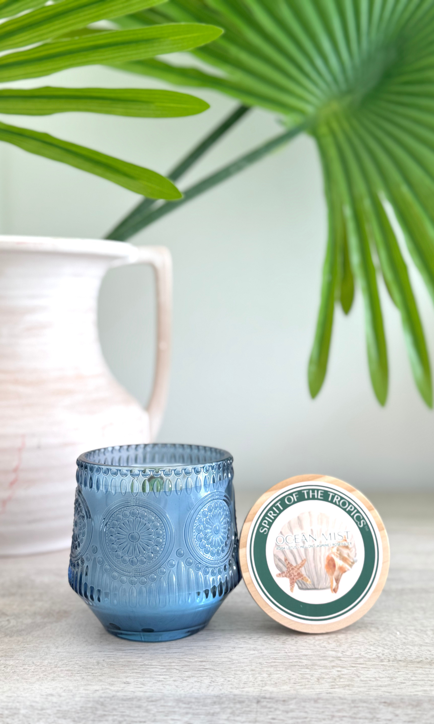 Featuring our Ocean Mist Organic Glass Jar Candle with exotic blends of ozonic accord, aqua lotus, melon, jasmine, rosewater, white woods, and sheer musk this candle brings positive intention to your space.