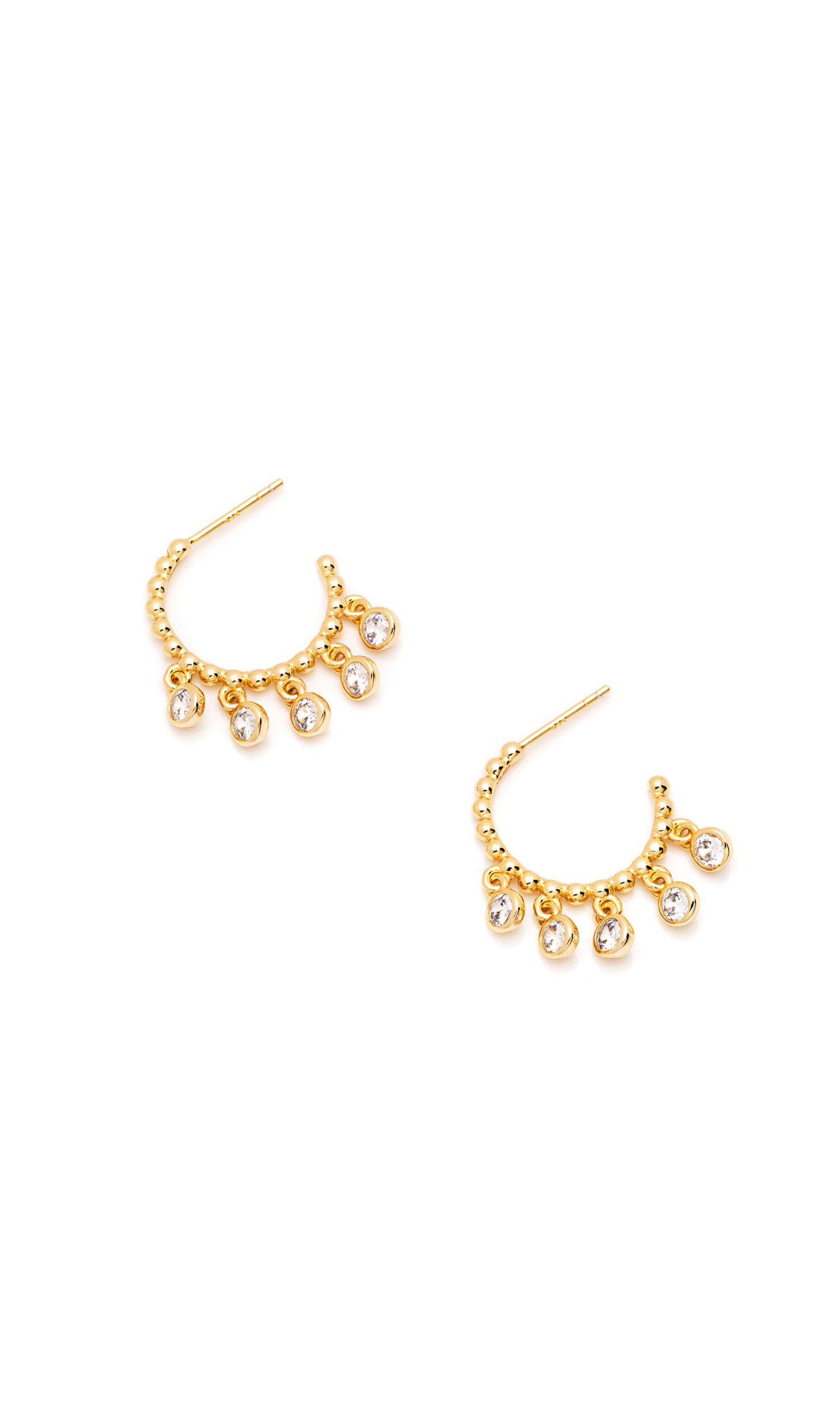 Our Shimmering Star Dangly Earrings, sterling silver and plated in 18k gold, are the perfect blend of glam and elegance. With dainty stars that feature cubic zirconia crystals, dangle and shimmer with the light, this accessory will add a cute touch to your outfit or make the perfect gift.