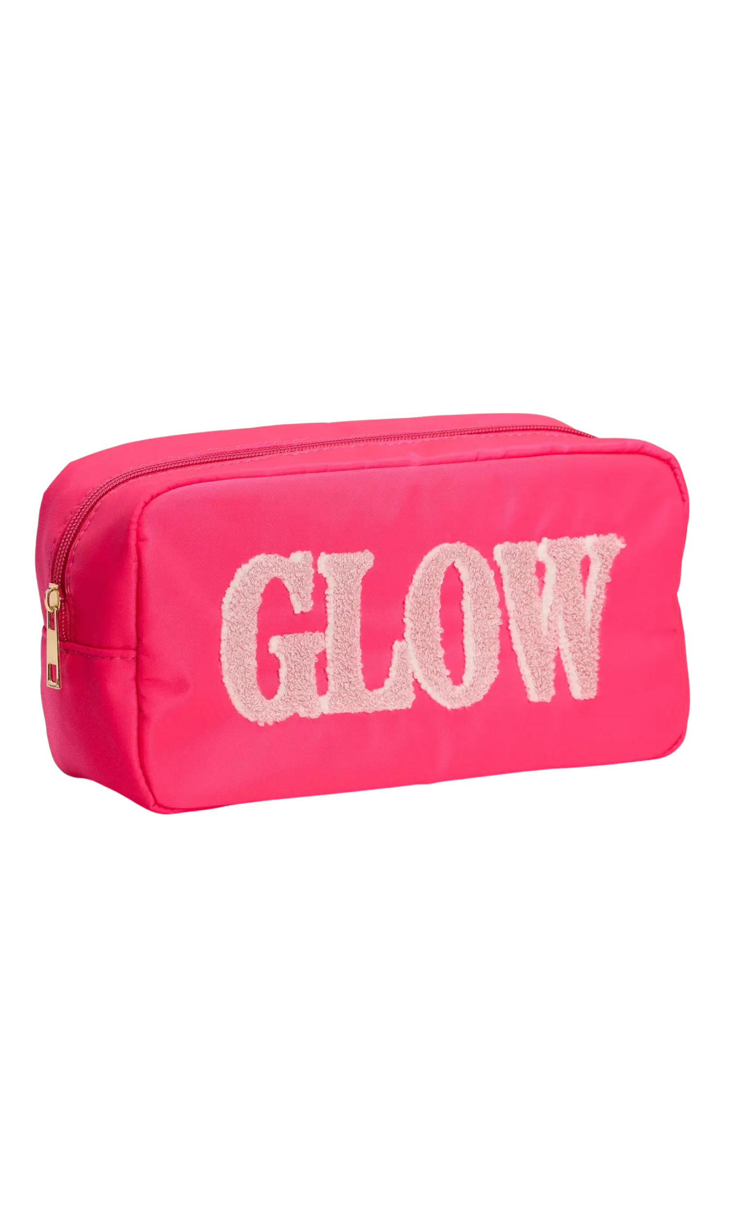 Stay stylish and organized with this travel makeup bag featuring fun chenille letter patches. Designed in bright, eye-catching colors with bold words like Glow, this bag adds personality to your daily routine or travels.