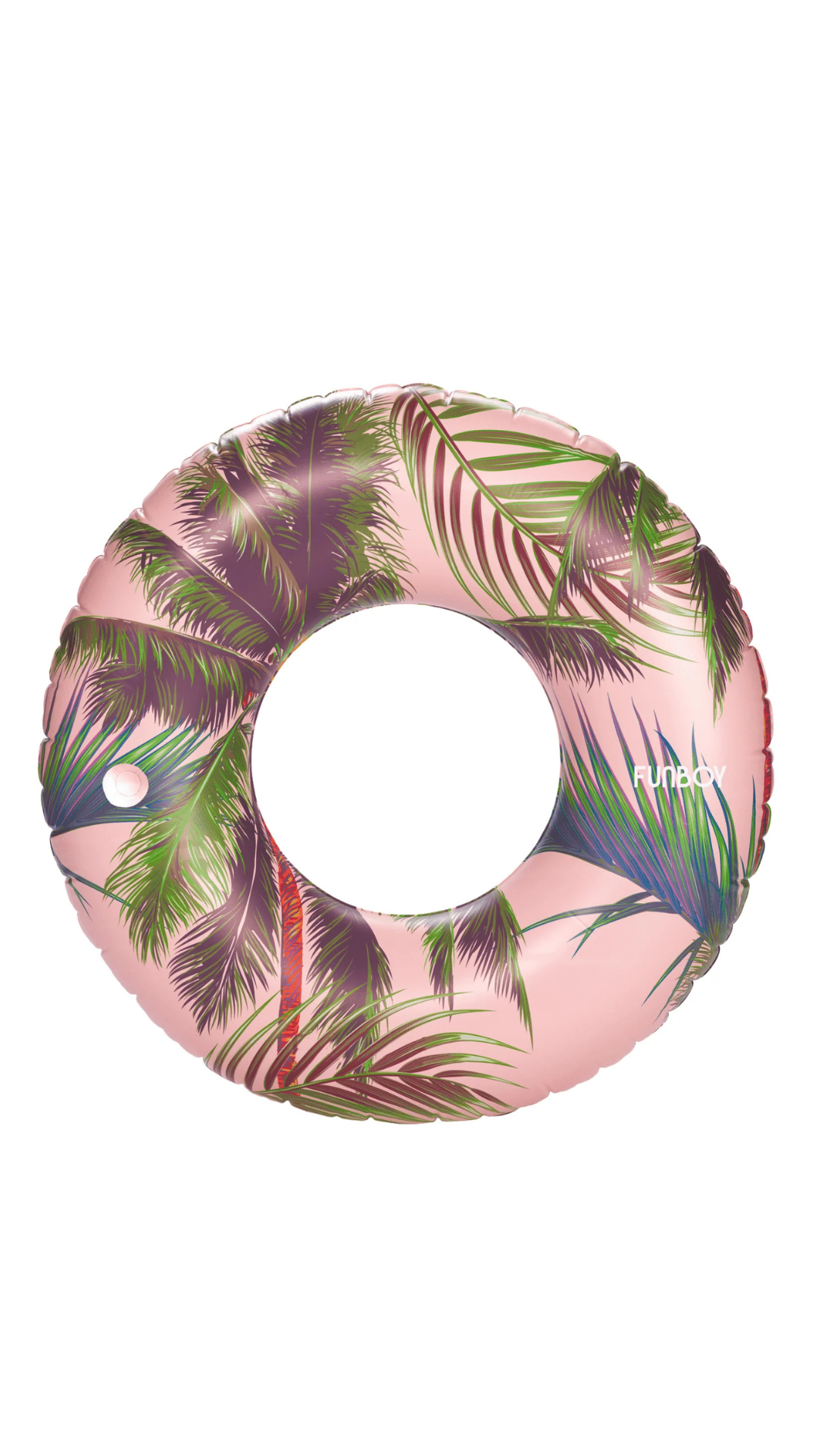 Welcome to California-cool. This tube pool float is an ode to vintage-cali summer vibes, with tropical palms and luscious greens & pinks. Oversized tube (donut) float. 50’’ diameter. Inflates in minutes!