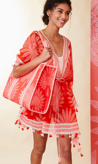 Elevate your beach or pool attire with the classic sophistication of our West Palm Beach Cover-Up. With such a beautiful pattern, we might as well call this Beach Cover Up a show-off! Accented with fluttering tassel trim, this flowy, V-neck pullover easily cinches to fit with a tasseled drawstring.