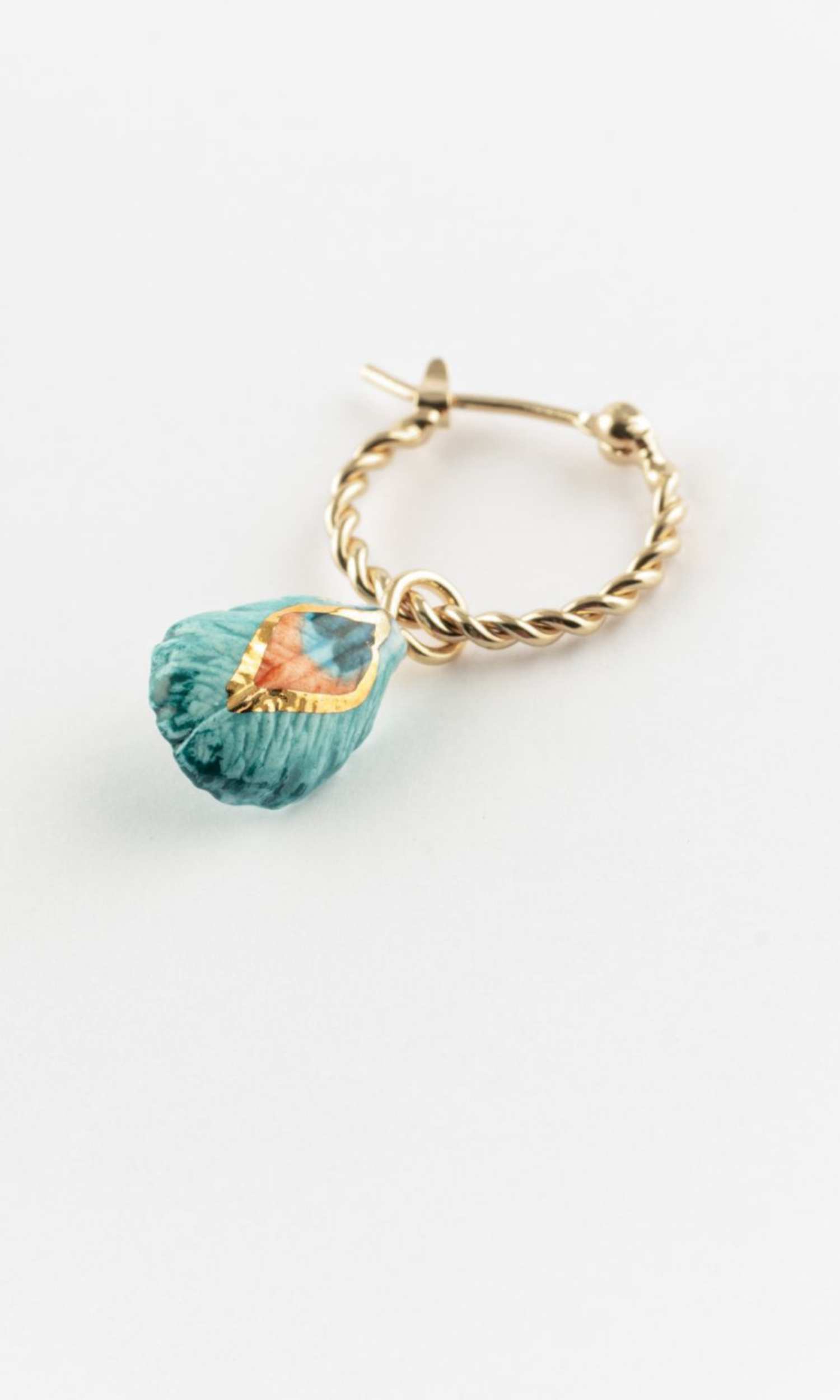 These small hoop earrings with a blue porcelain peacock feather dangling on the bottom are made and painted by hand which makes it dainty and unique. Treat yourself to something new to make your outfit pop!