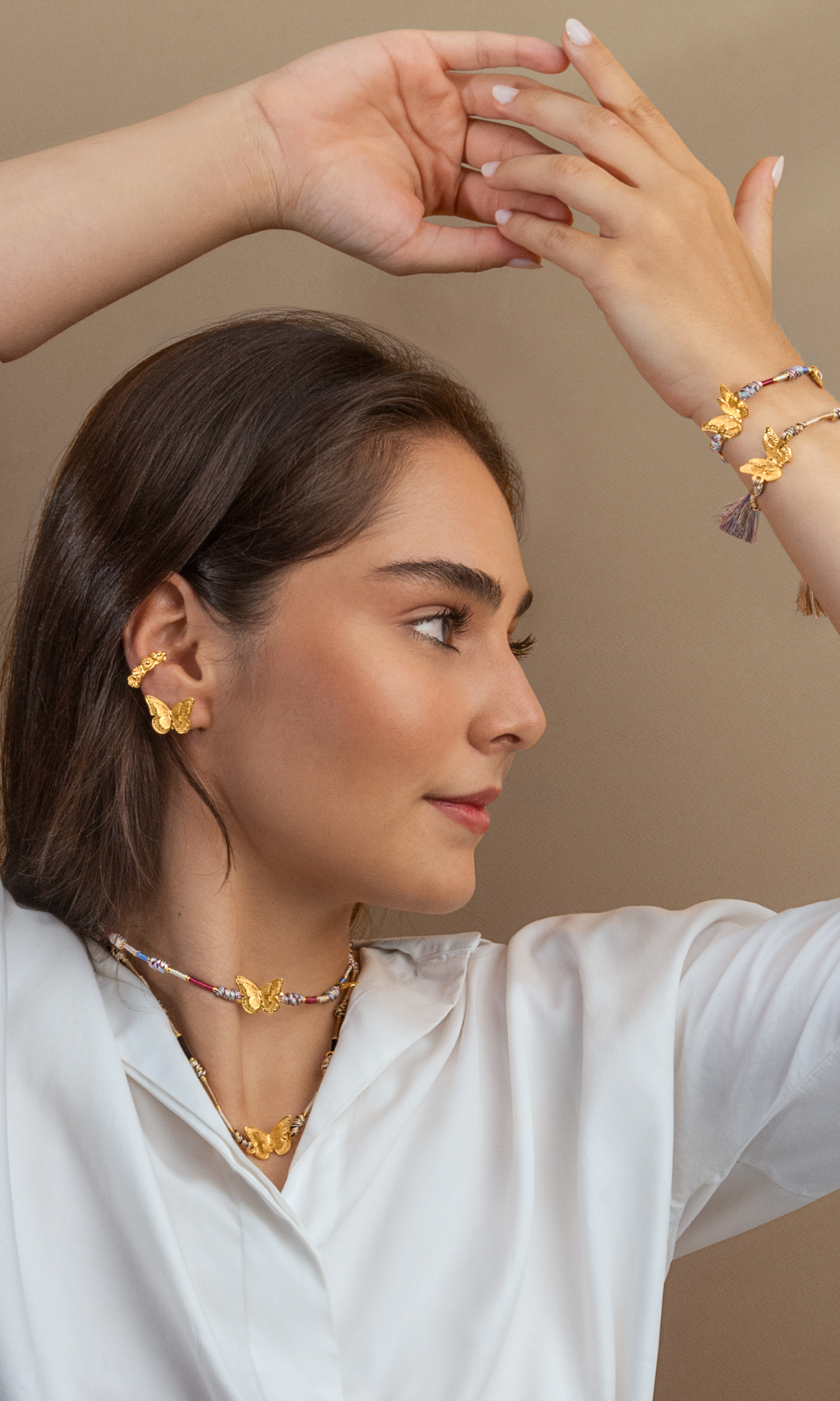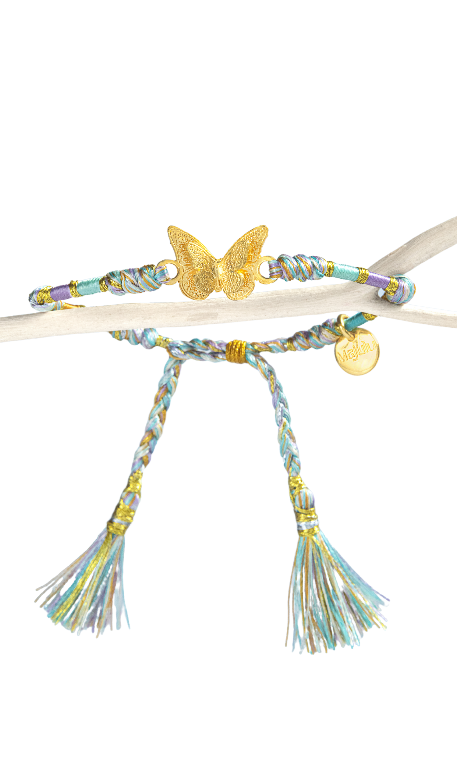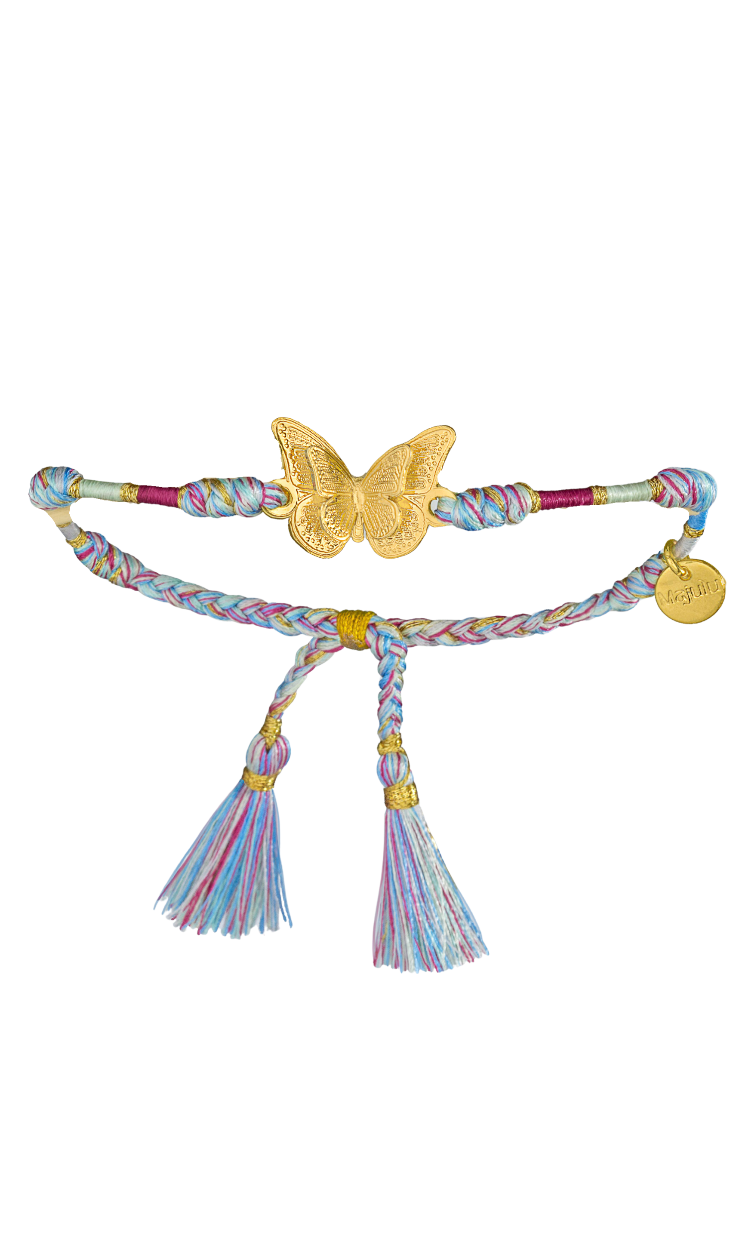 These Woven Colombian Butterfly Bracelets are crafted with pure love! It features a beautiful gold butterfly and colorful threads. It's a fun way to accessorize your look! Delicately handmade in Colombia, this is perfect if you want to gift someone a special and unique gift.