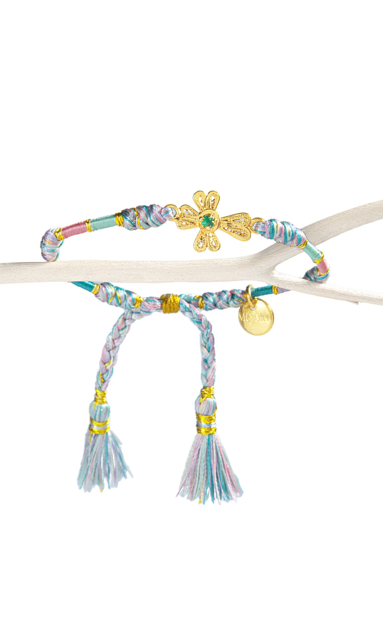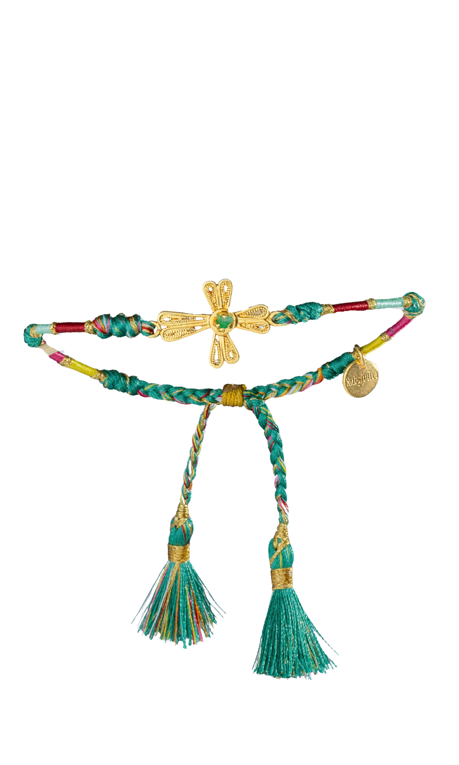 This woven bracelet features beautiful colored threads with the cross charm in the middle. The cross includes a emerald stone that sparkles in the middle. It's a fun way to accessorize your look! Delicately handmade in Colombia, this is perfect if you want to gift someone a special and unique gift.