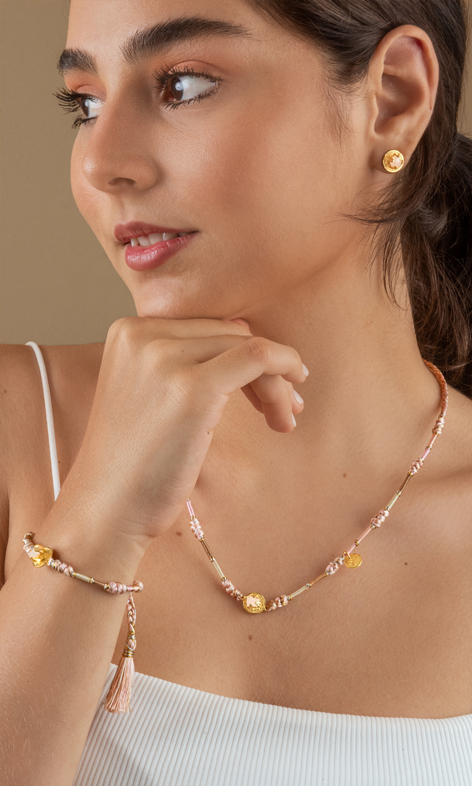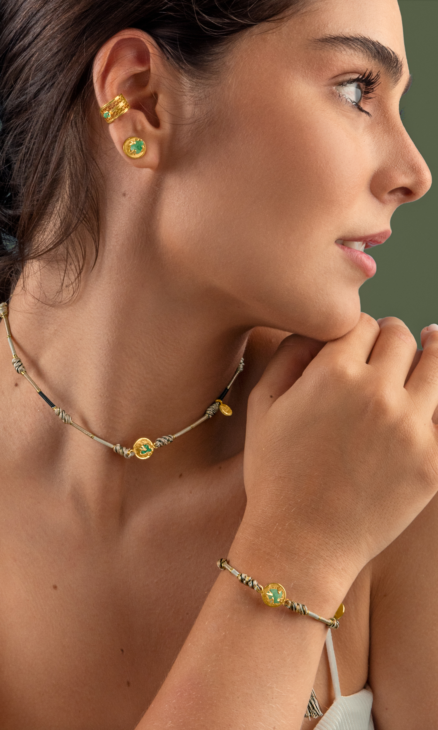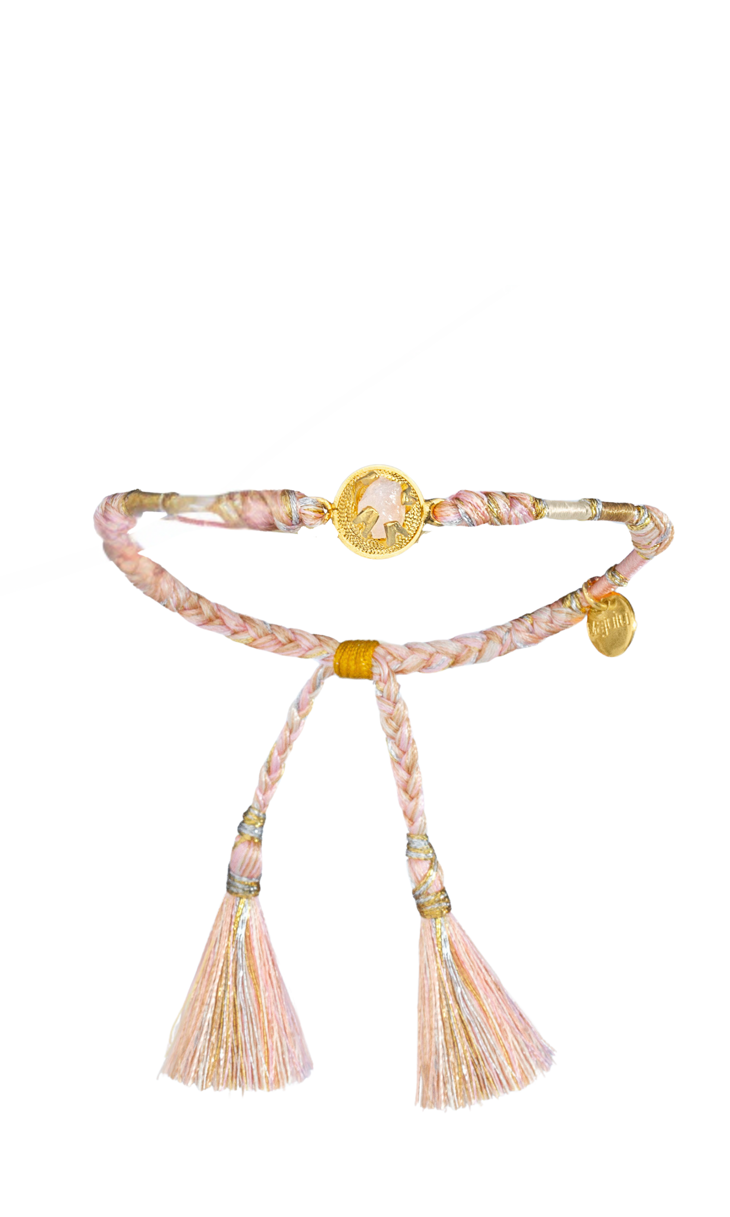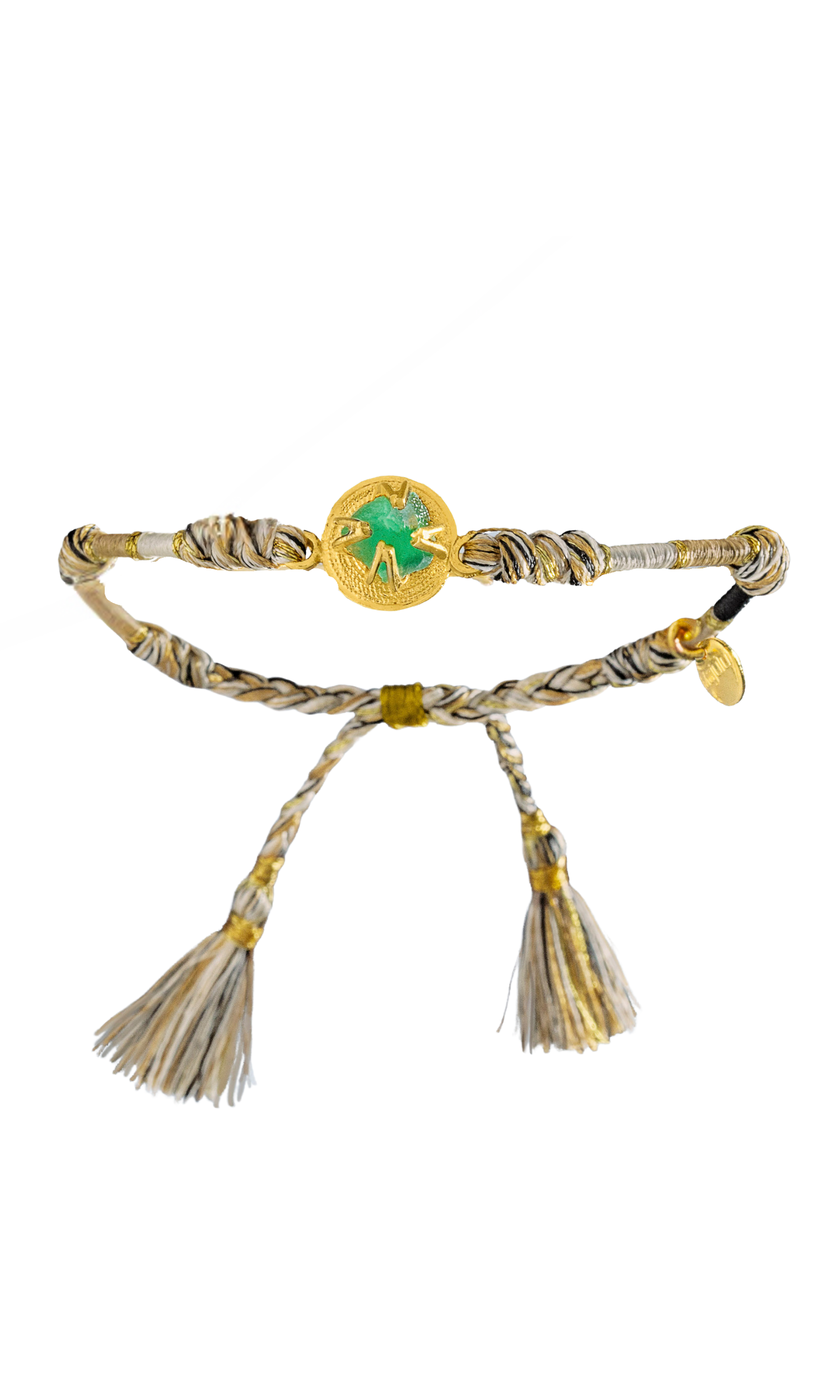 This braided bracelet features beautiful colorful threads and a radiant stone in the middle that sits on a gold base. It's a fun way to accessorize your look! Delicately handmade in Colombia, this is perfect if you want to gift someone a special and unique gift.